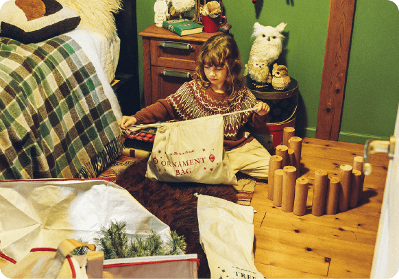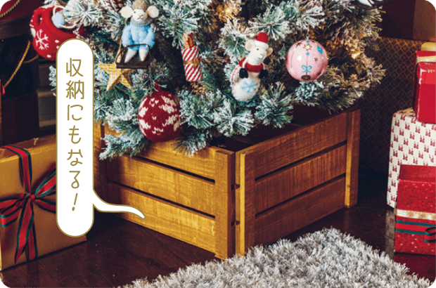 ツリーを楽しんだ後は、studio CLIPオリジナルツリーとオーナメント一式を収納できる専用のバッグにお片づけ。オーナメントと支柱をしまえる巾着もそれぞれセットになっているので、来年の飾りつけもスムーズです。収納バッグは畳んでコンパクトになるのでツリーを飾っている期間も場所を取りません。