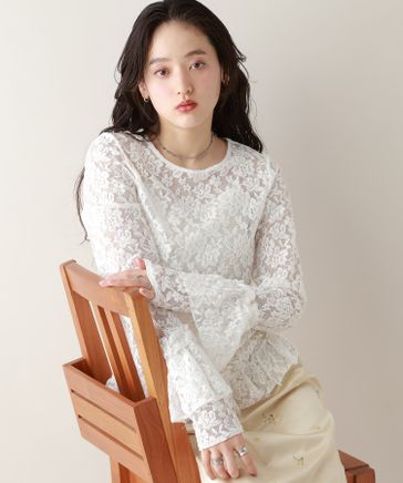 【WOMENS】ベルスリーブ/レースフリルレイヤードトップス
