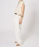 ウエストをベルトで締めてもサスペンダー用のボタンに止めても、形がキレイに保てます。