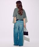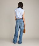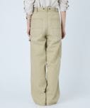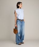 形がいい。好き。ストレートではなくて、すこーしテーパード?になってるからか足首あたりの収まりがよい(気がする)微妙なんだけど、ただのワイドだと裾を巻いた時に上手く収まらない。気に入りすぎたら、イロチ買いしそうです。デニムは硬すぎず、柔らかすぎず。サイズは38で緩めを買って、サスペンダー、ベルトと後ボタンを斜めにかけて(メゾンエウレカのような?)ハイウェストでもはけます!