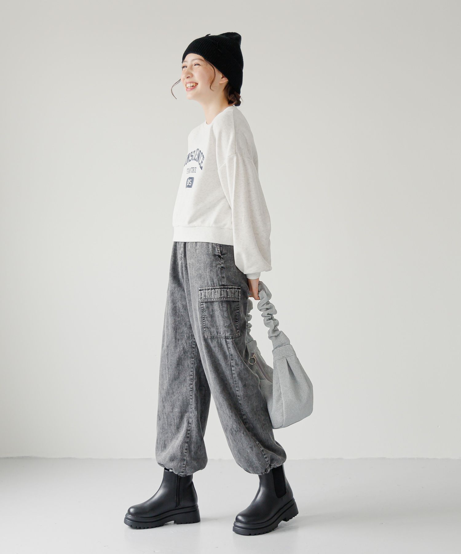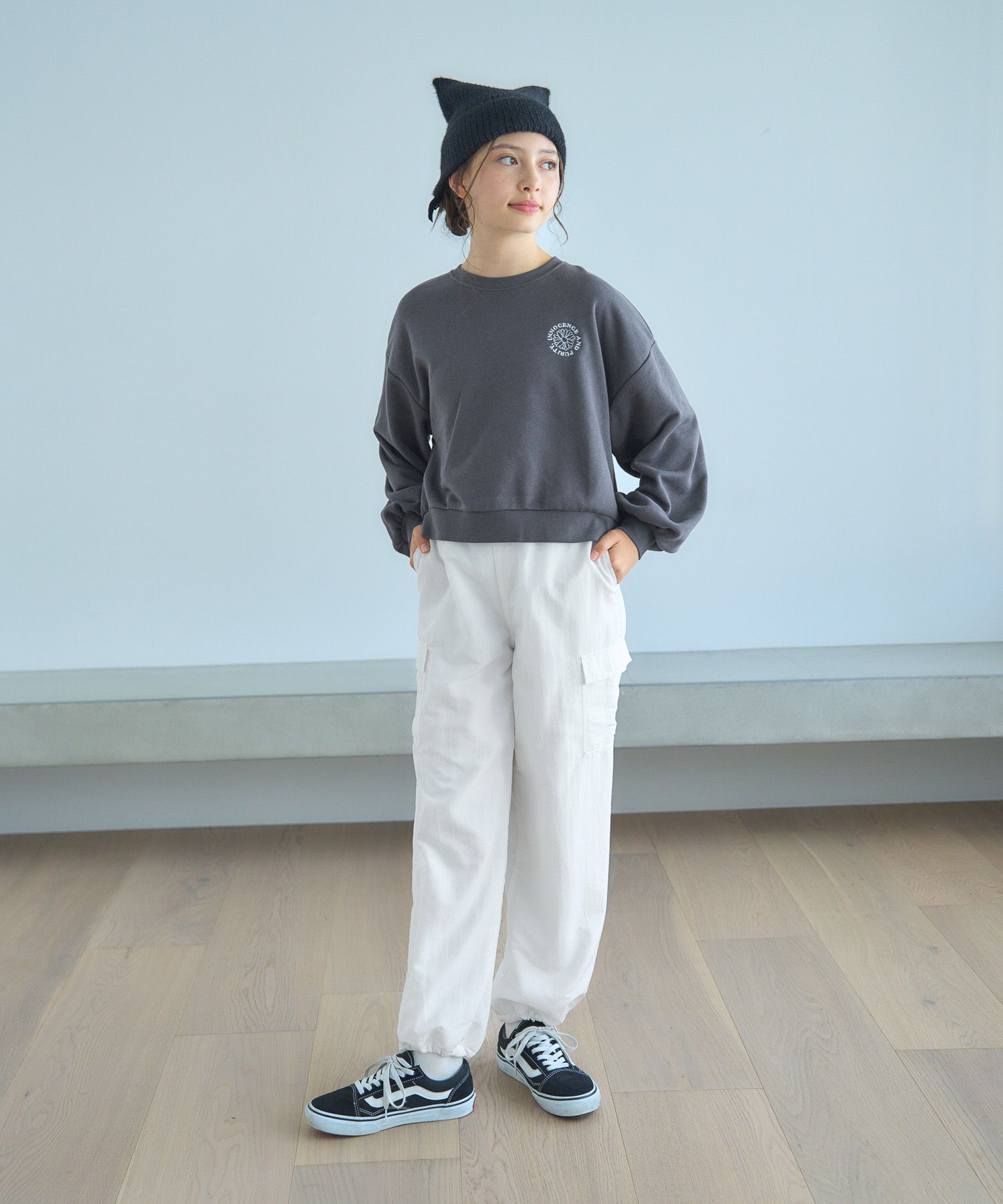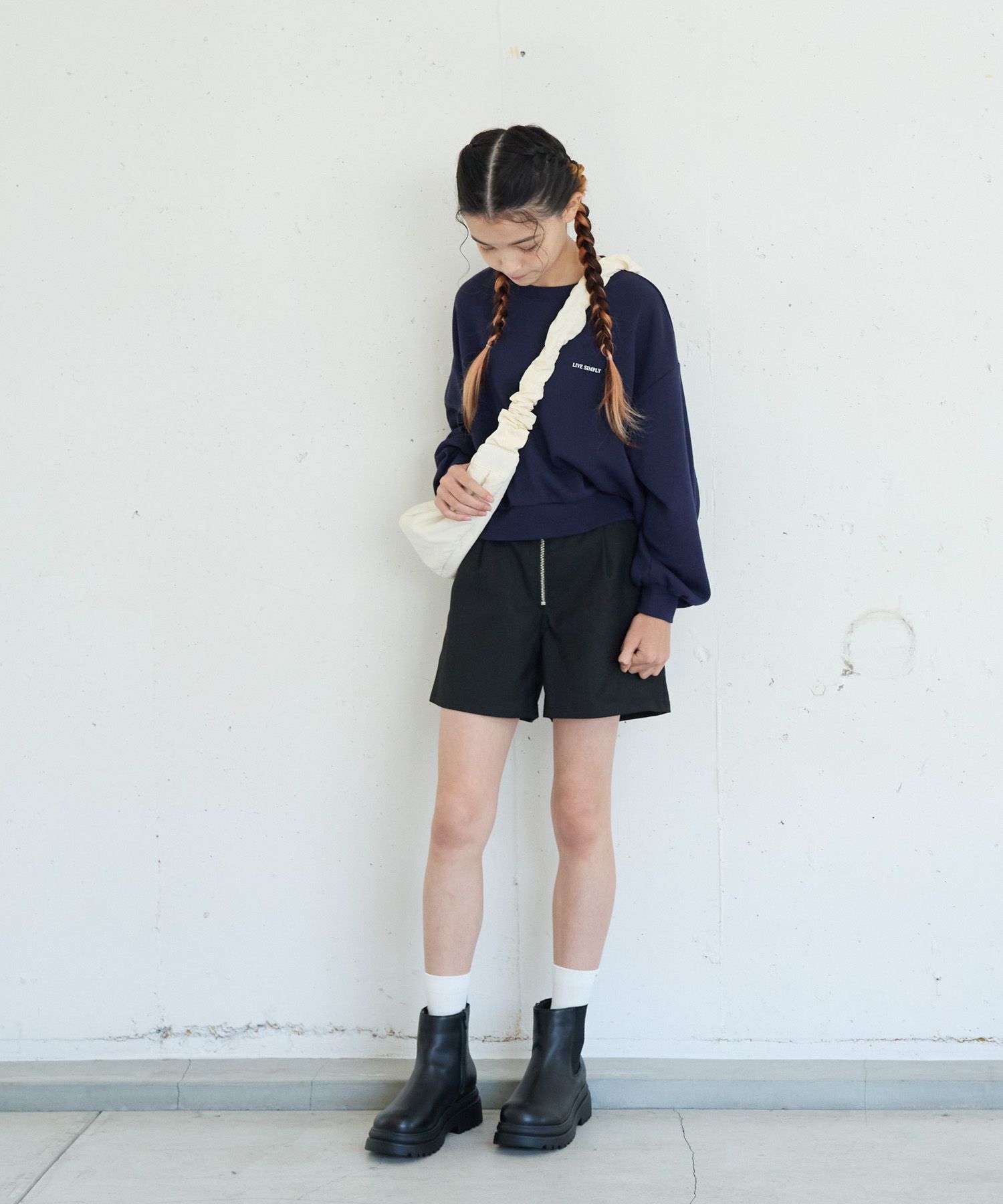 ショート丈のスウェットなので、カーゴパンツやミニスカートなど