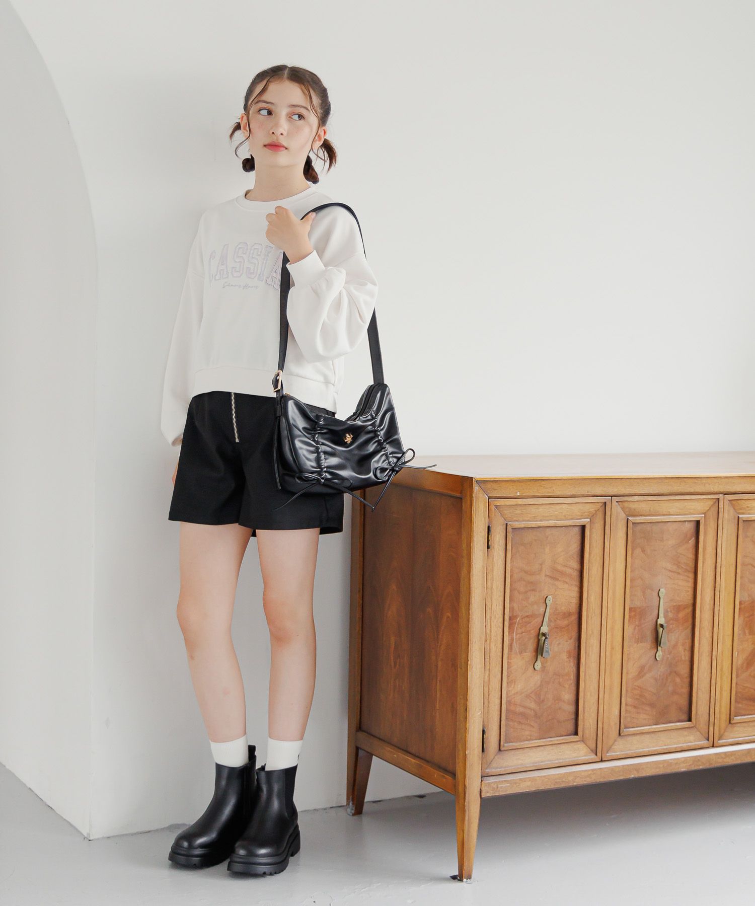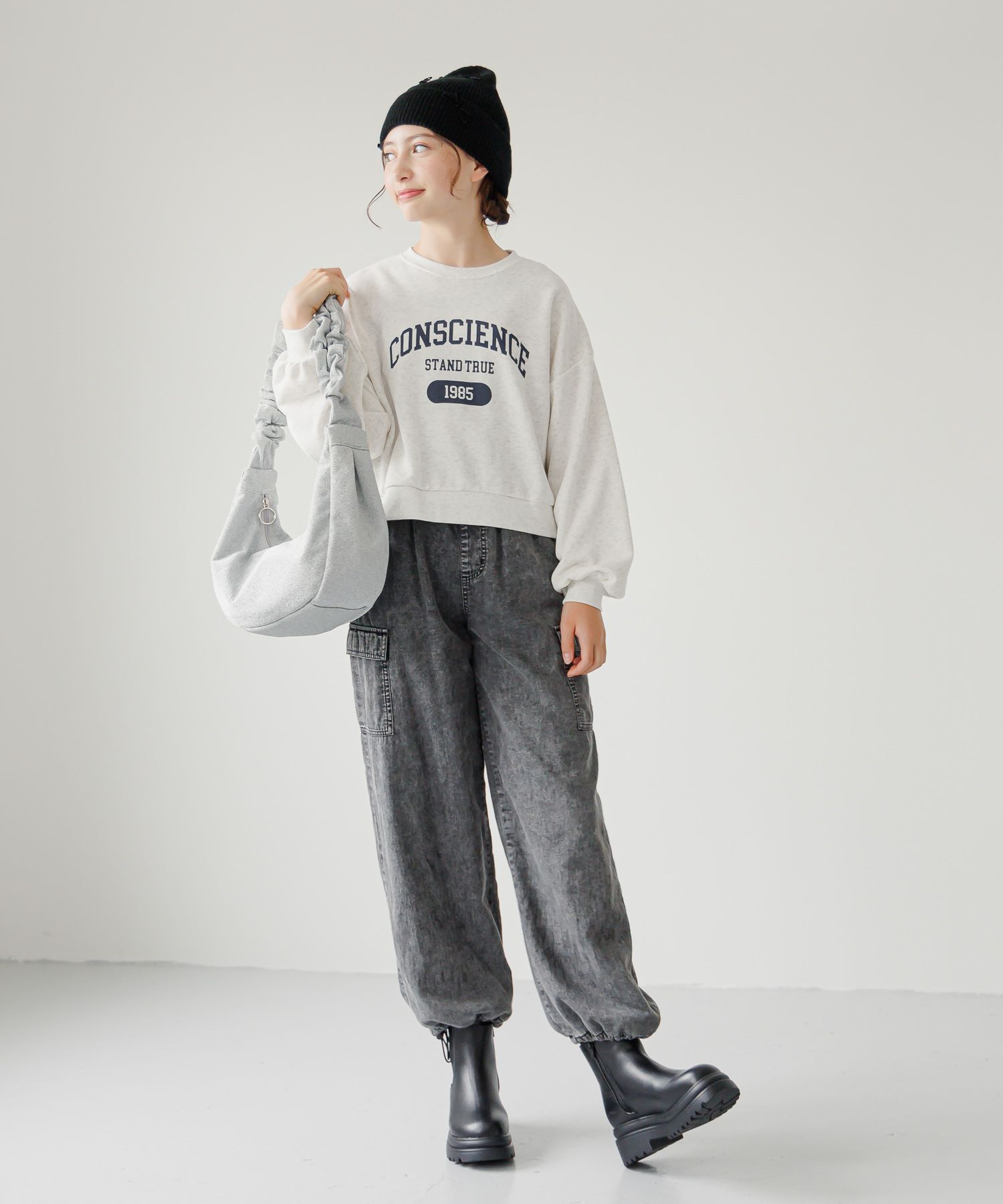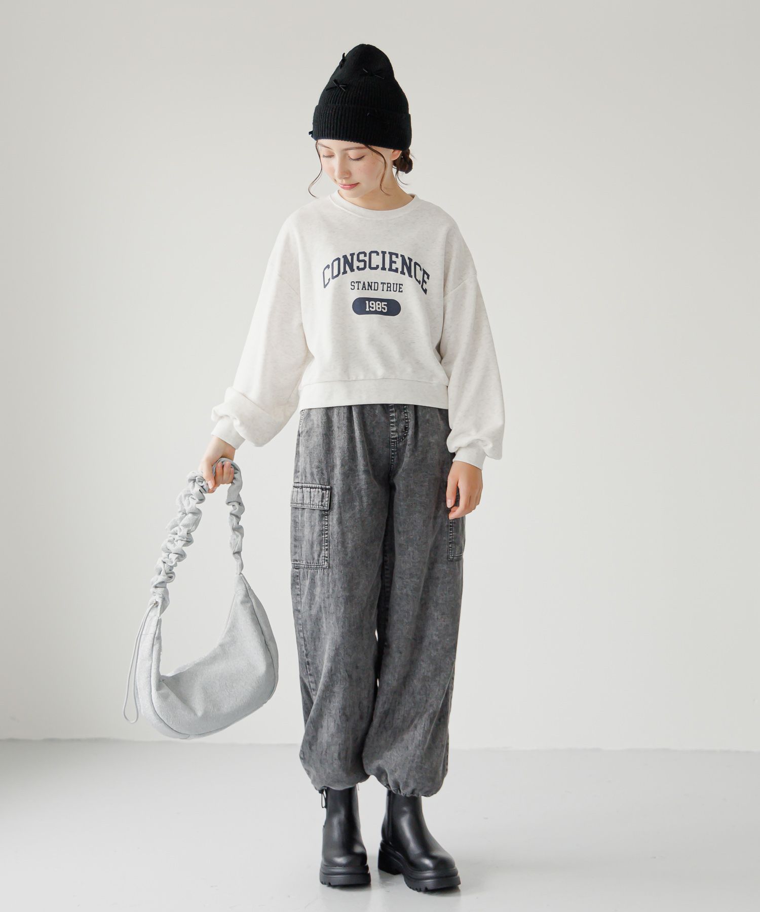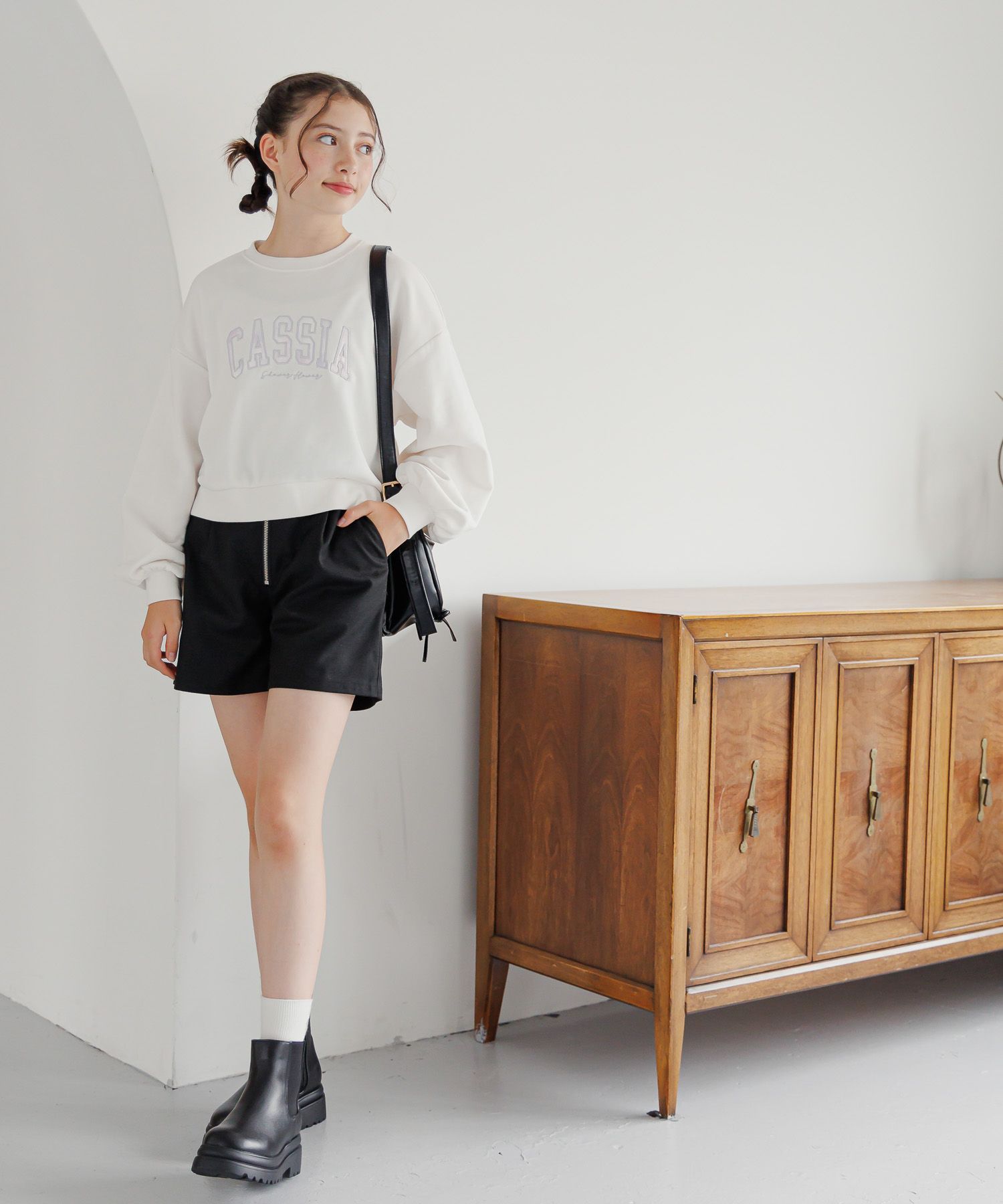 ショート丈のスウェットなので、カーゴパンツやミニスカートなど
