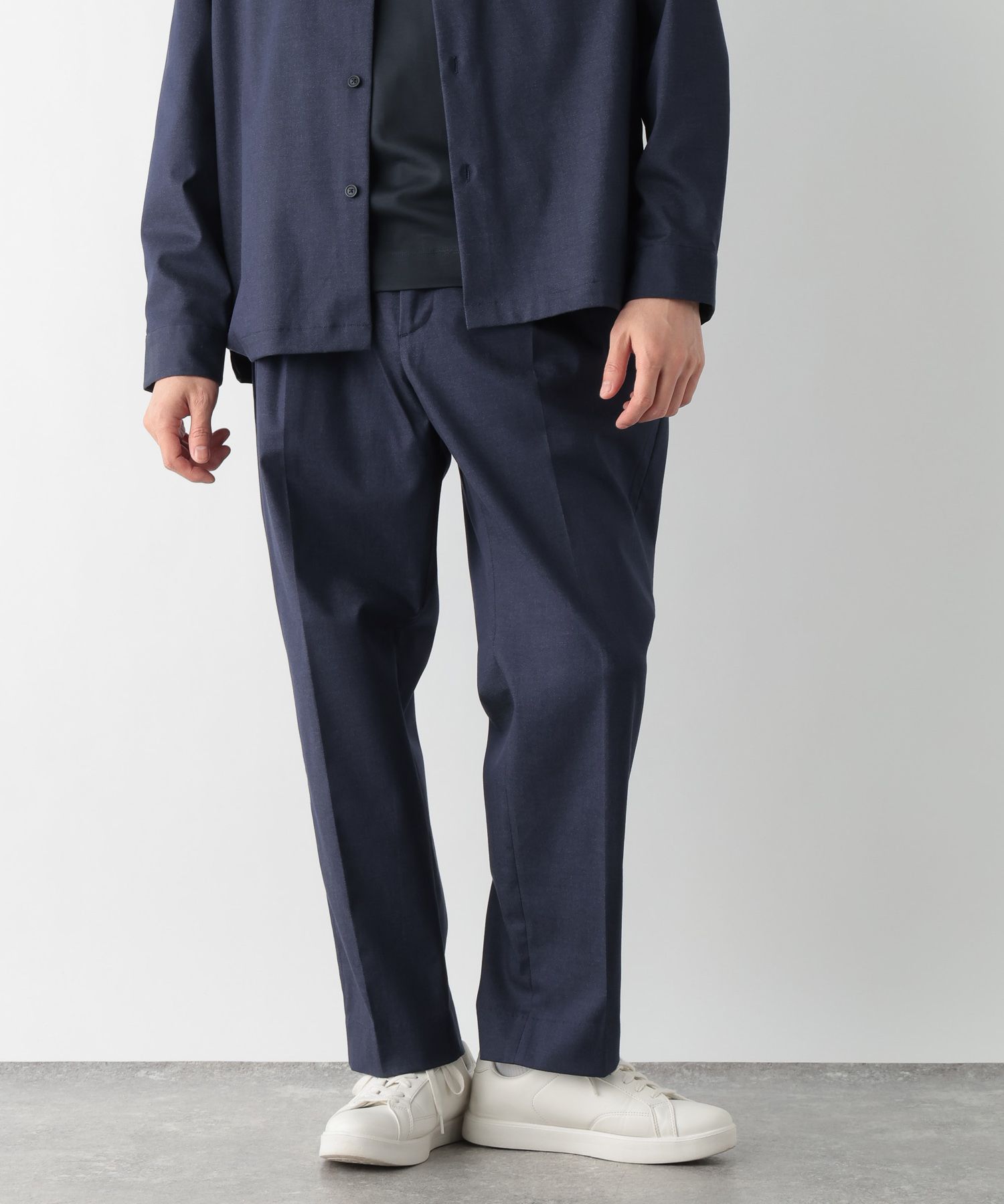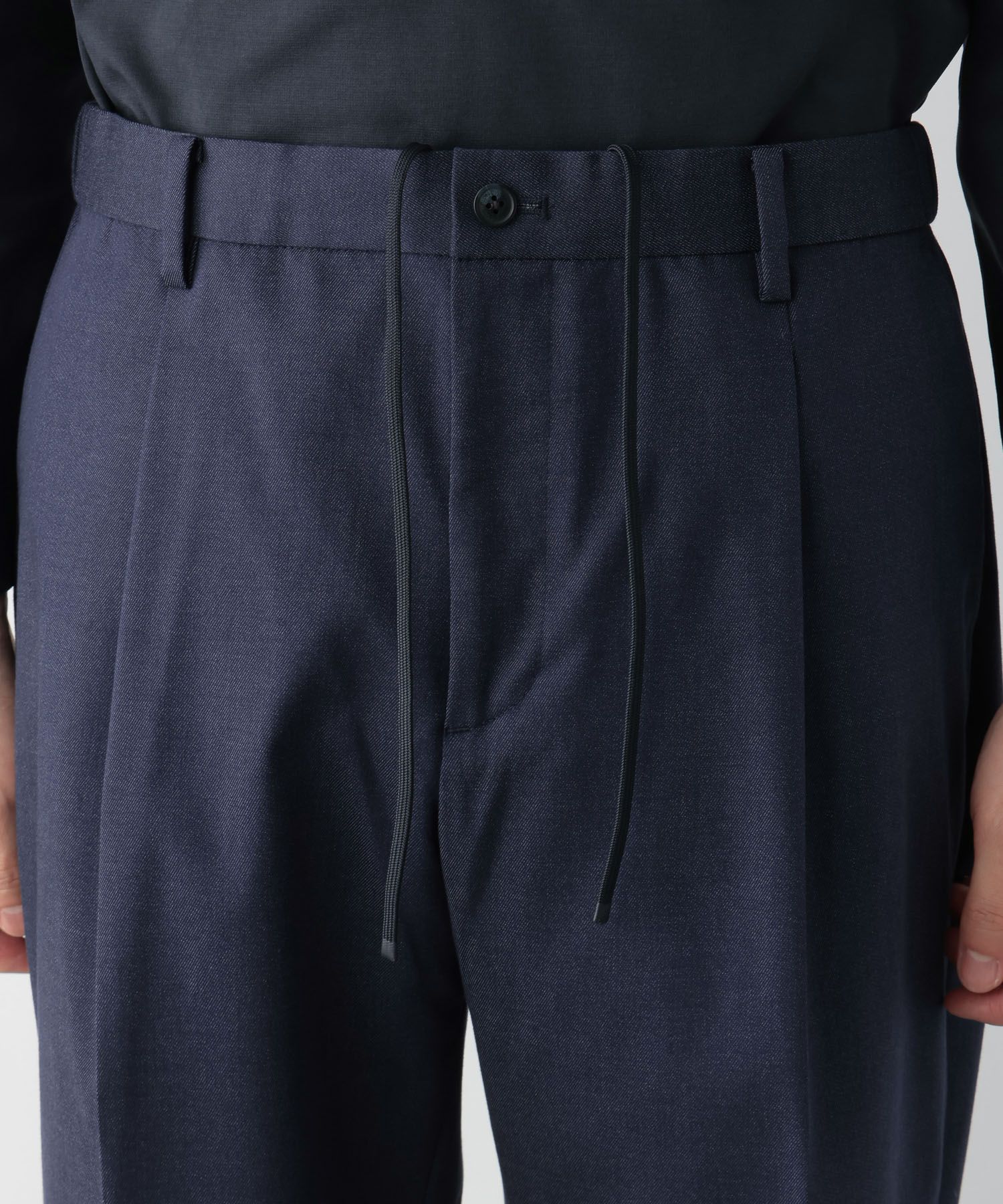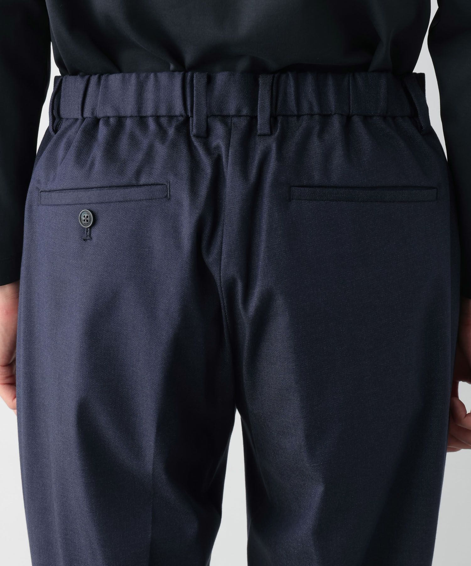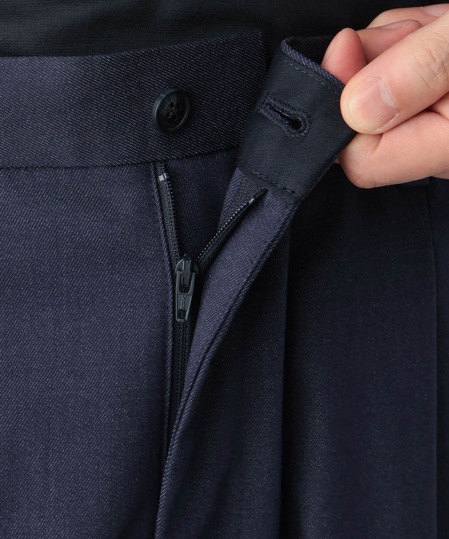 ウエストイージー仕様なのベルトレスでお気軽にご着用いただけます。