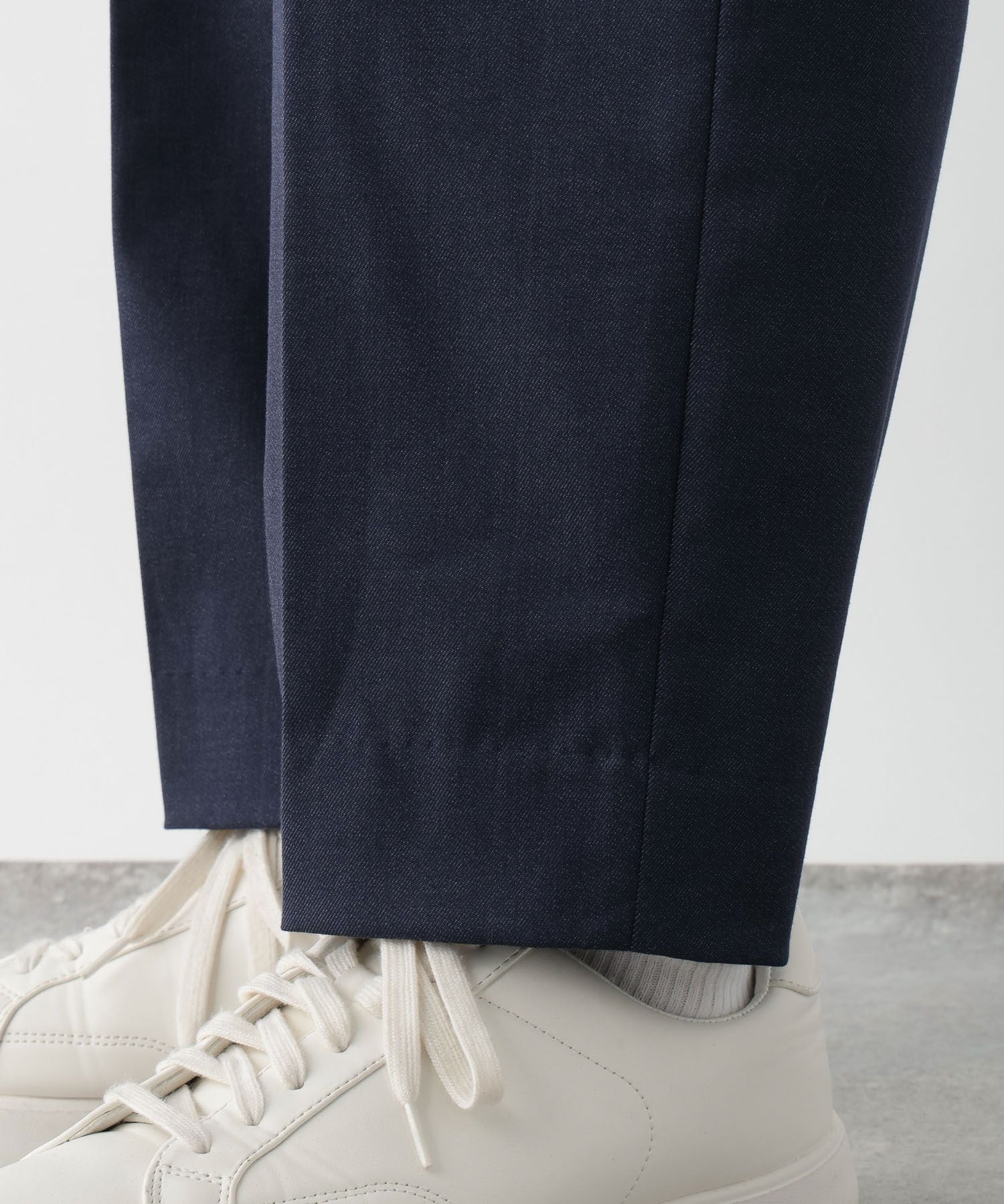タックがある事で腰渡りにゆとりを持たせ裾に向けてキレイにテーパードするシルエットにこだわったパターン。