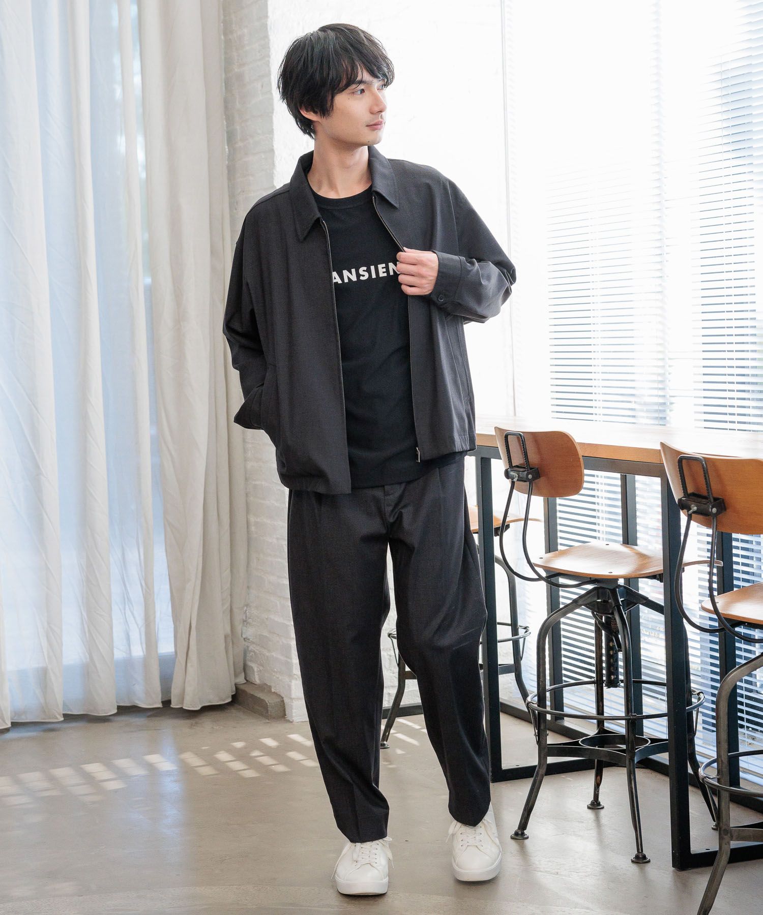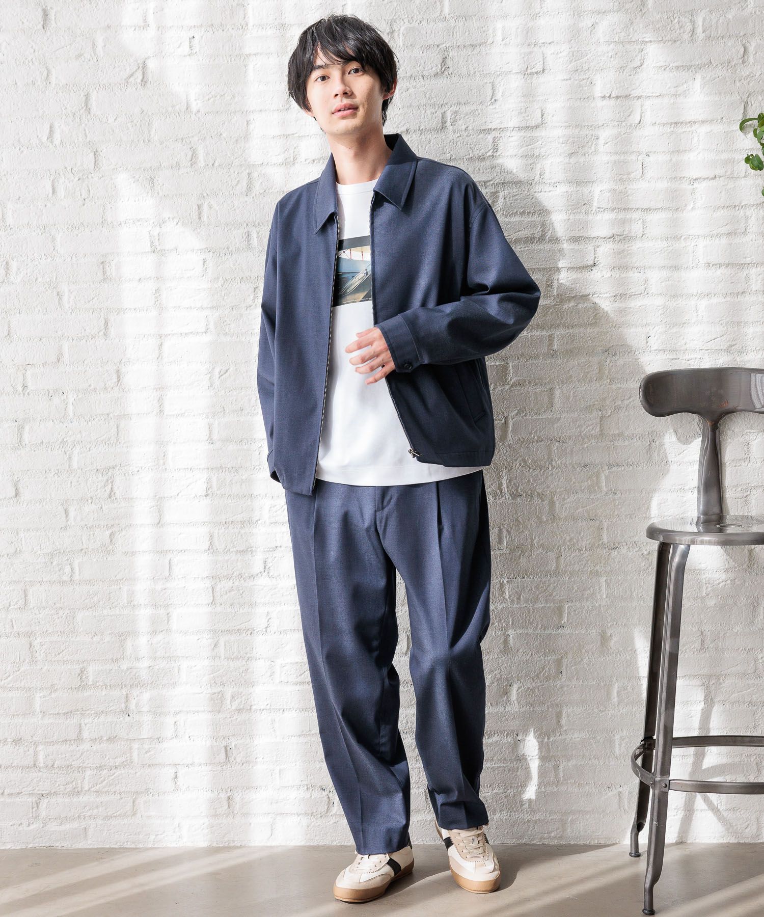 ON、OFF対応可能な汎用性の高いアイテムなのでアーバンシリーズのジャケットとのセットアップスタイルでONスタイルはもちろん、