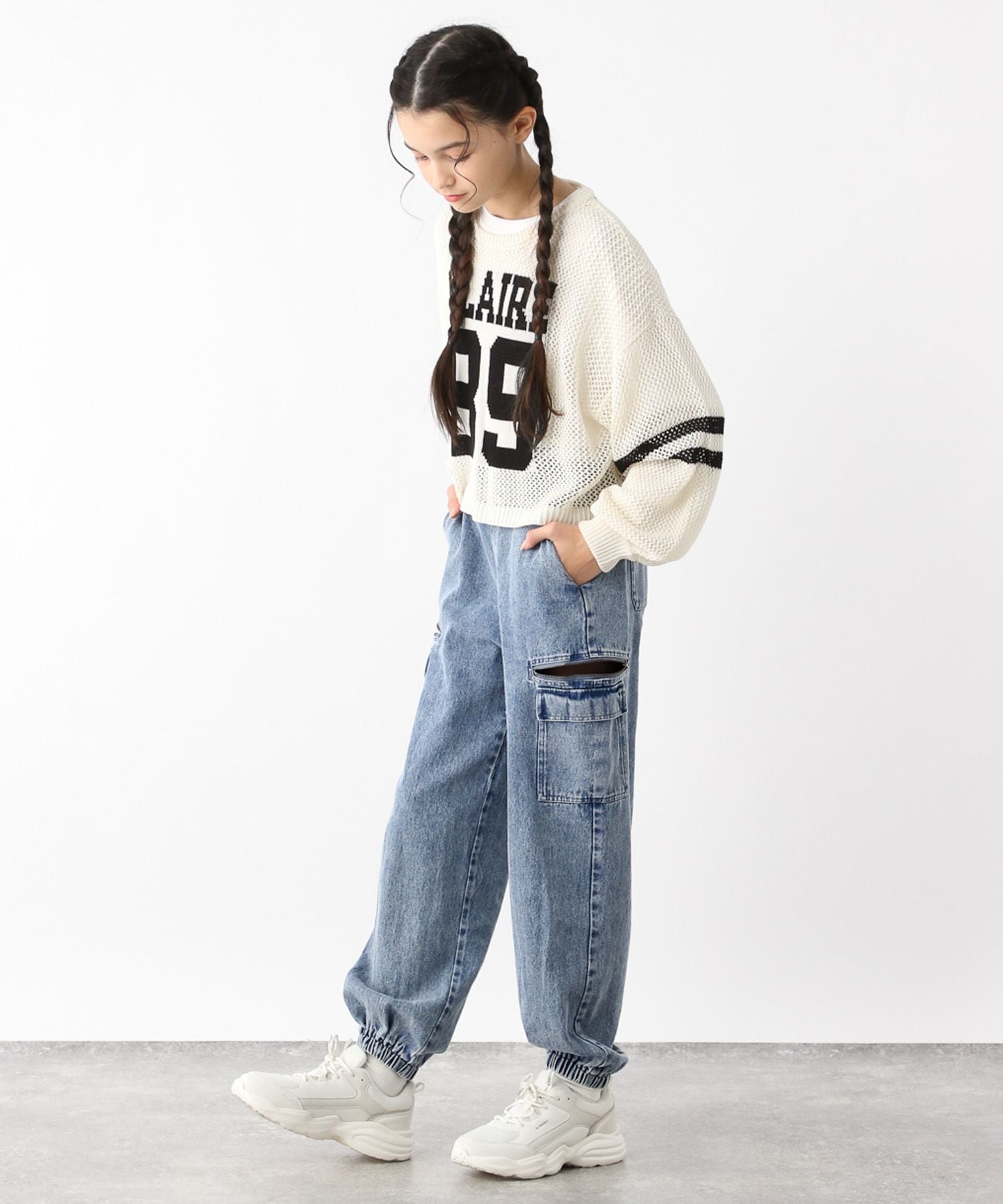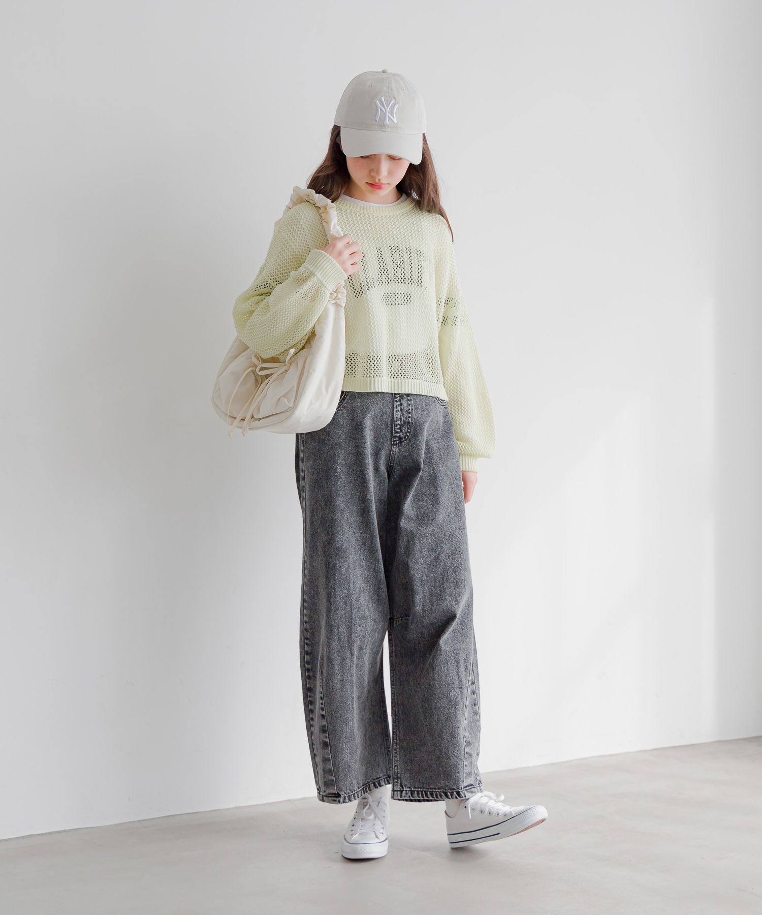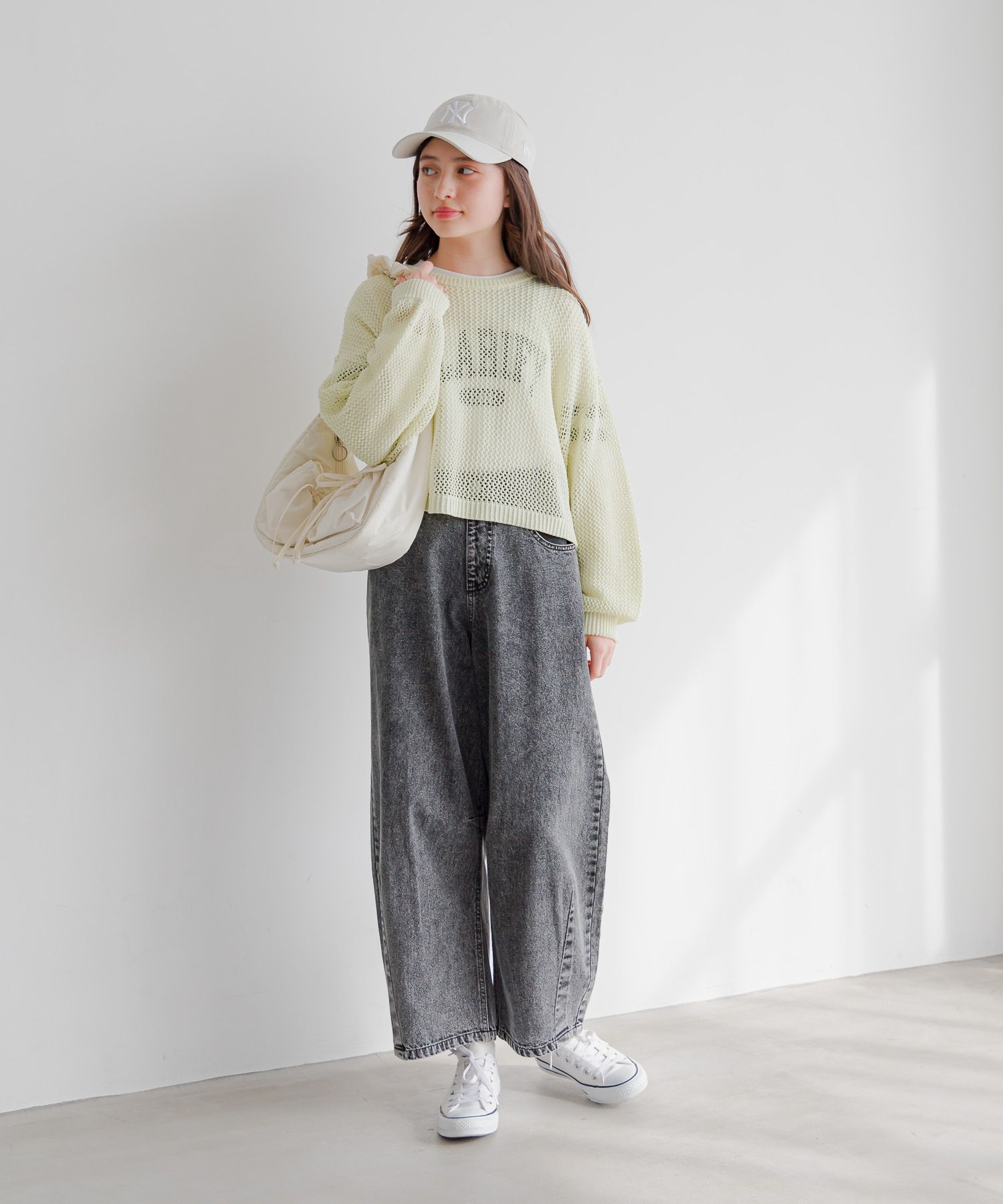 メッシュニット、ゆったりしていてとてもかわいいです。デニムやショートパンツに合わせて着ています。小学生女子なのでいつ引っ掛けるかと思ってひやひやしてますが、まだ引っ掛けていません。洗っても伸びたりせず優秀です