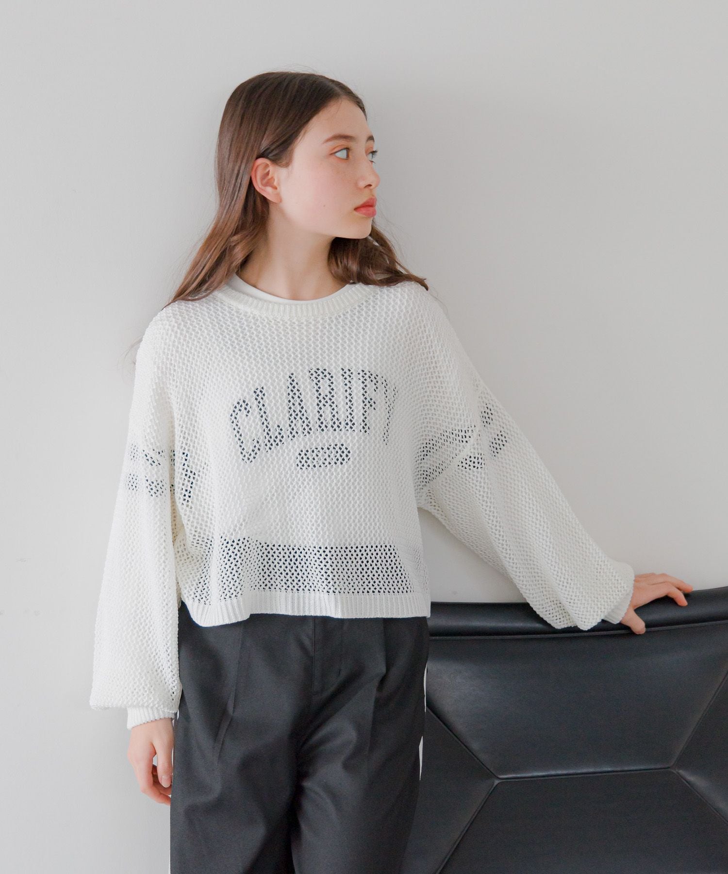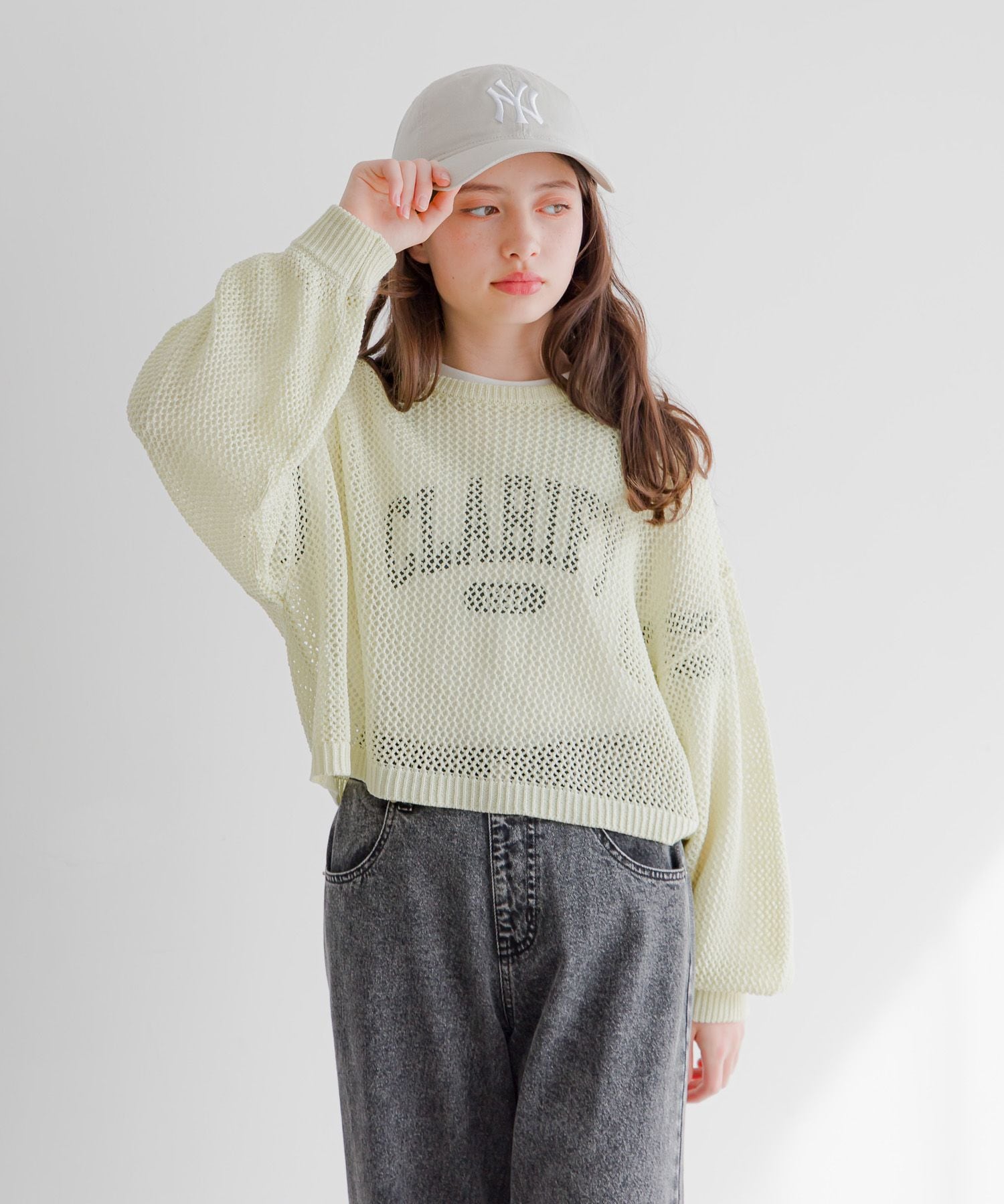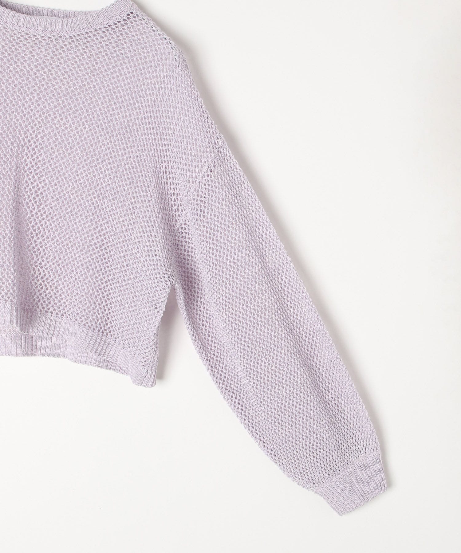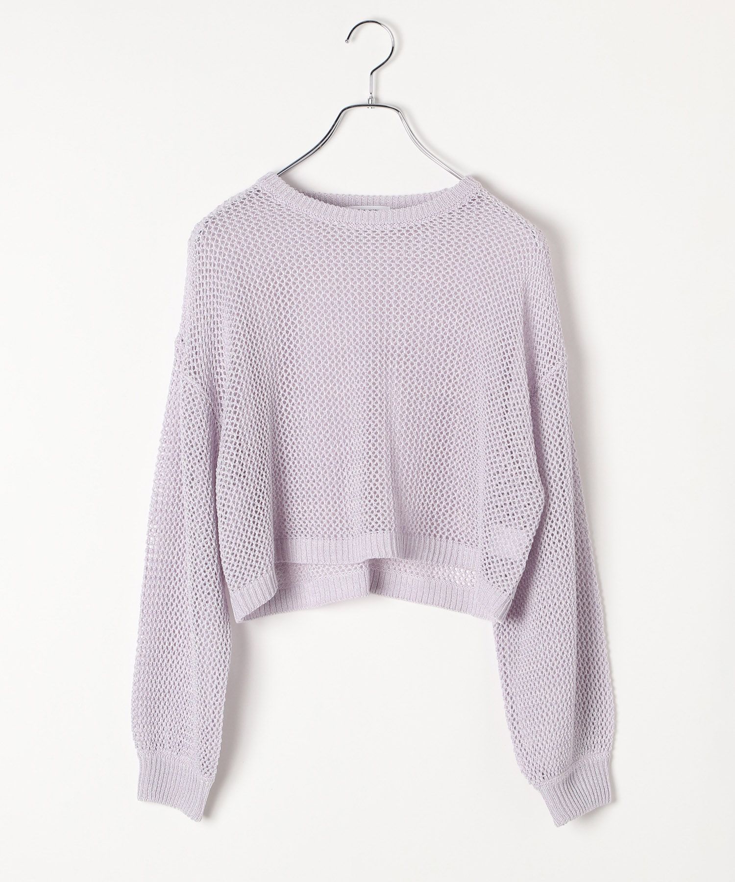 プリーツスカートなどのミニボトムにも合う、ちょうど良い丈感とトレンドの素材感のメッシュニットです!