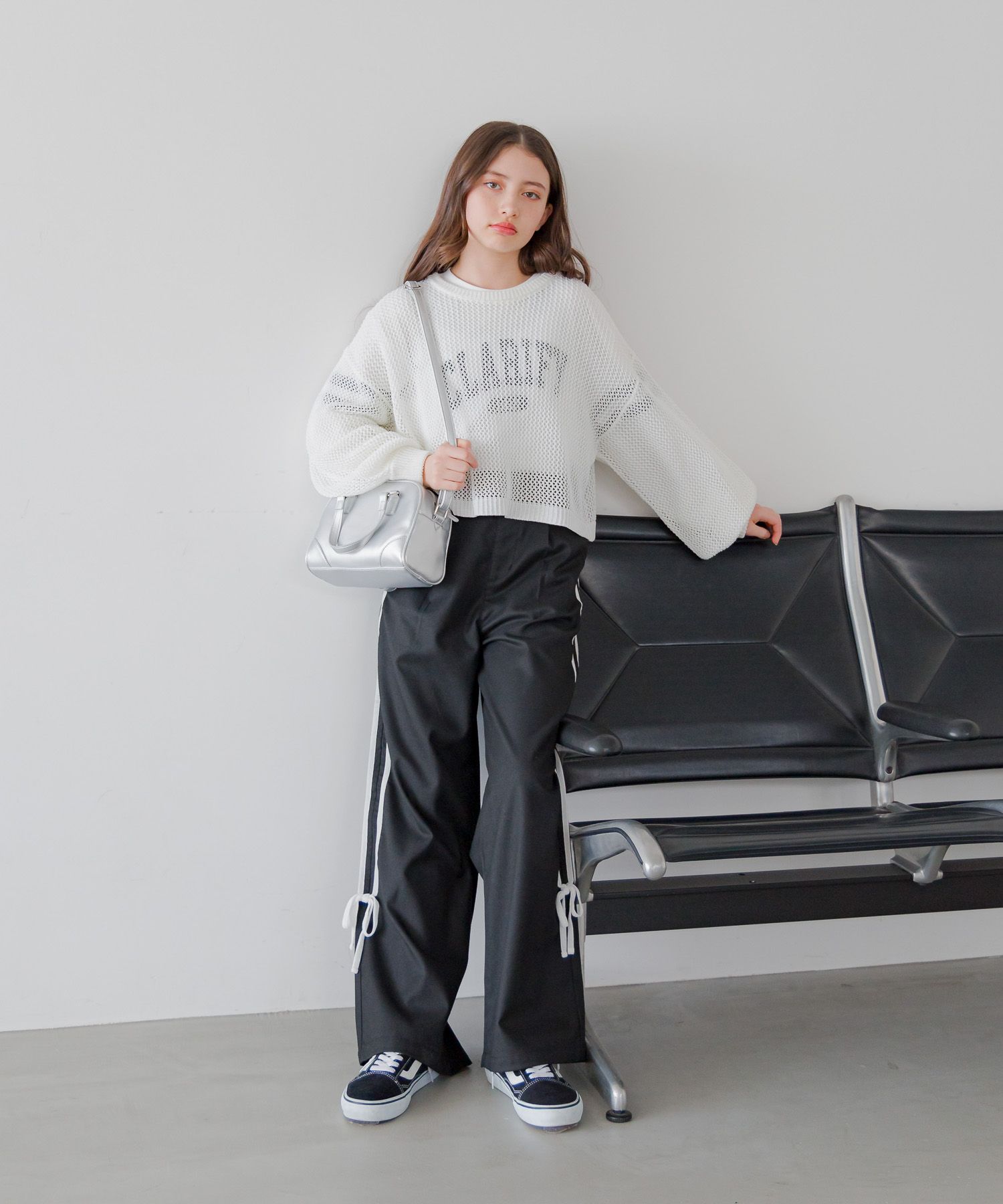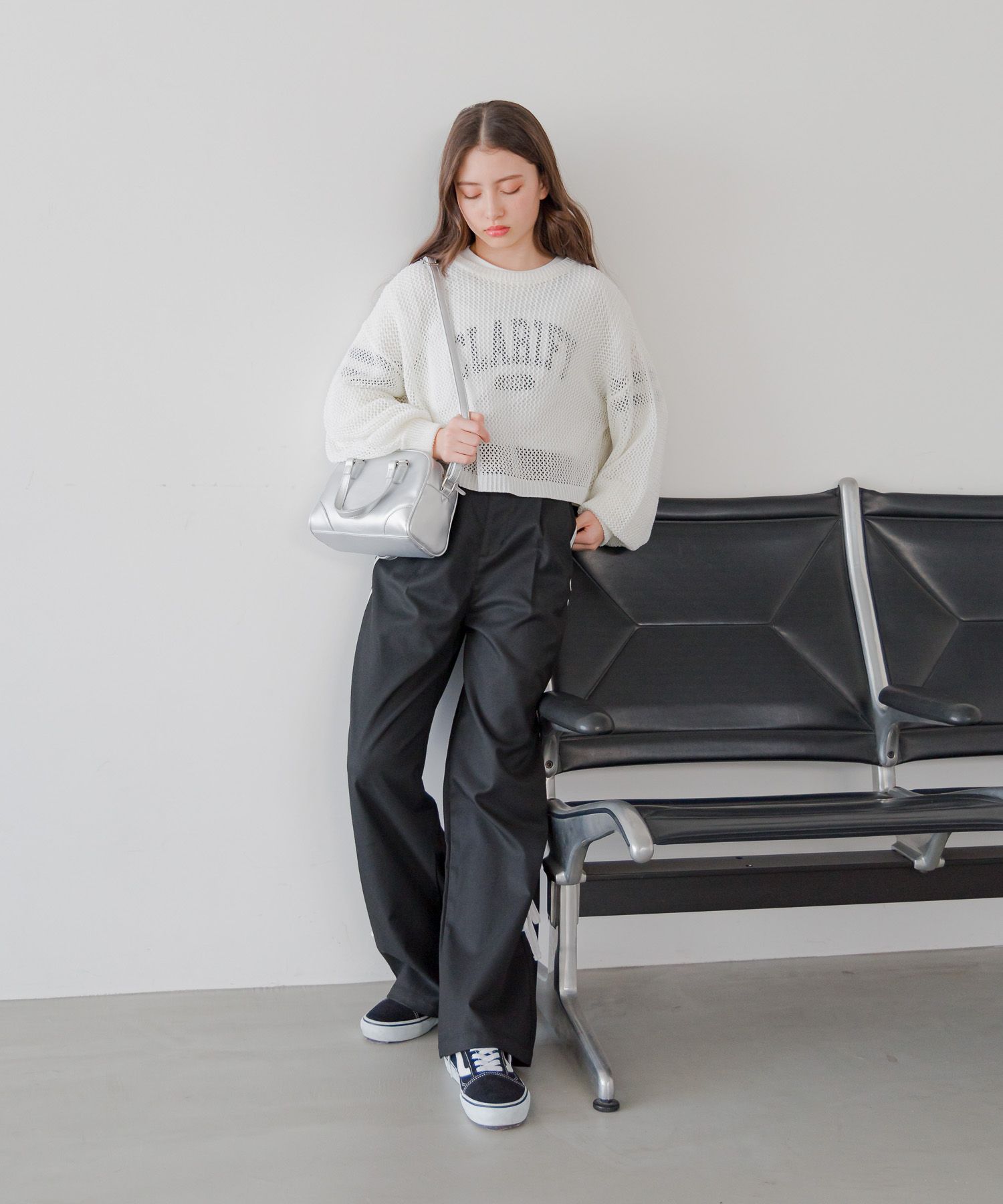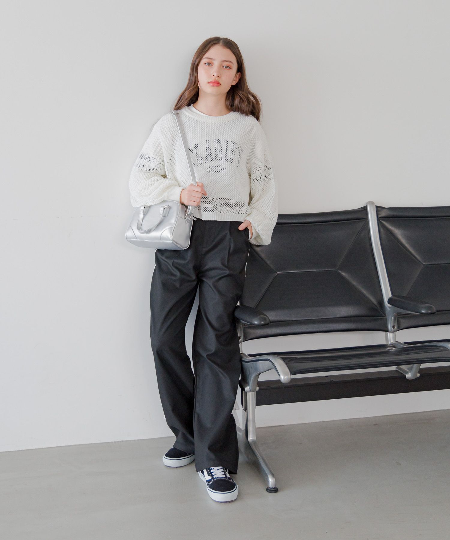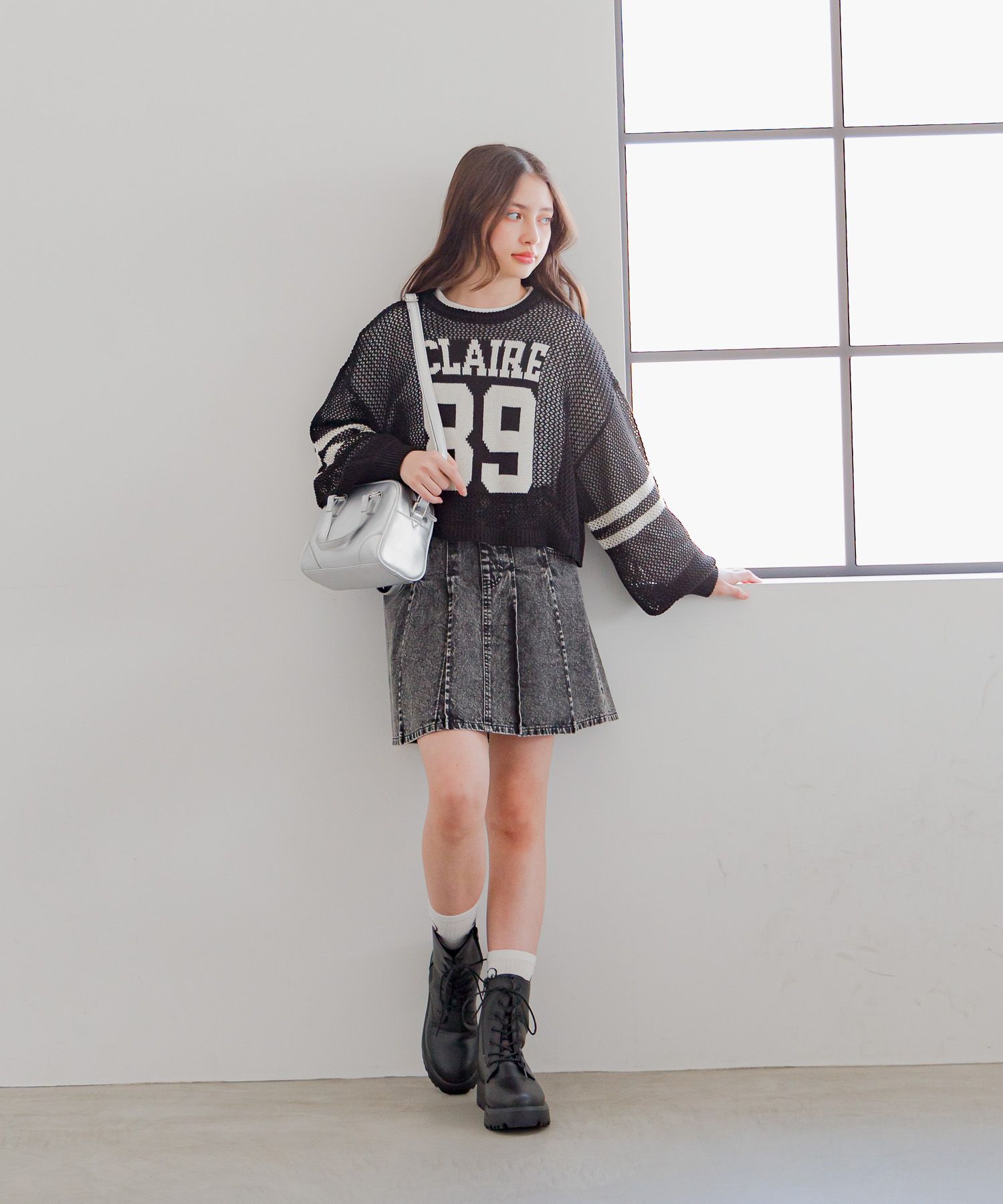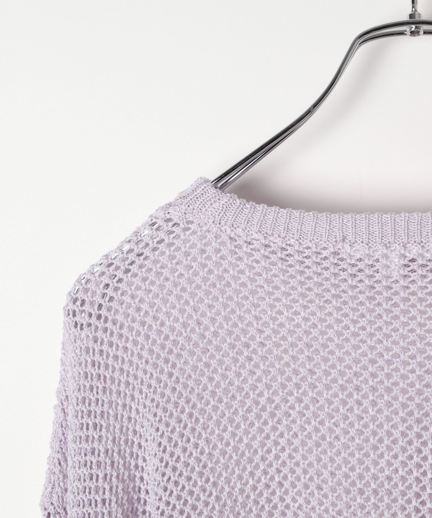 プリーツスカートなどのミニボトムにも合う、ちょうど良い丈感とトレンドの素材感のメッシュニットです!
