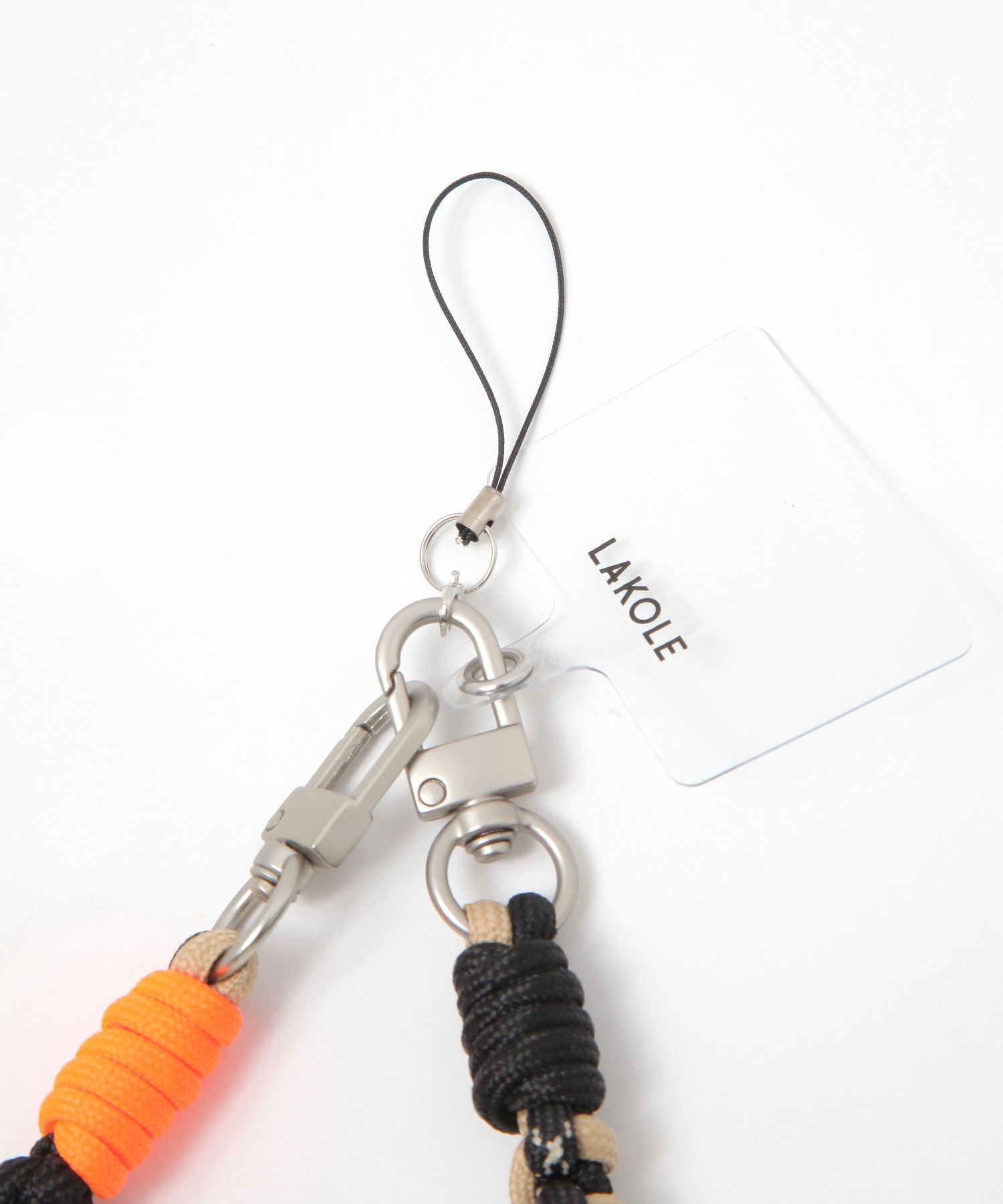カラビナが両端についており、ストラップも付属でついているので、携帯やハンディファンにつけて持ち運びができます。