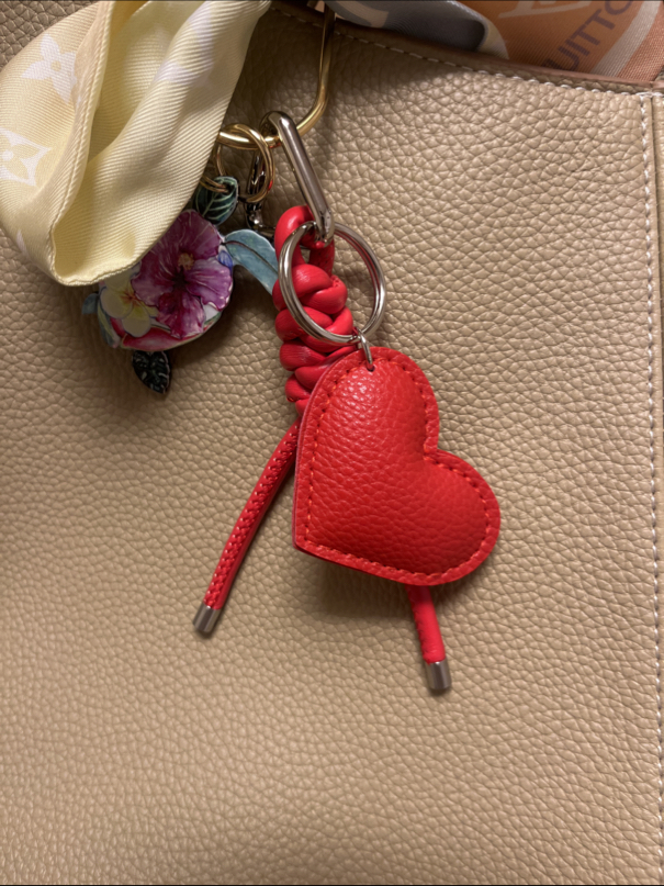 店舗で見るまでは赤は目立ちすぎるかなと思いましたが、実際見たら断然赤がカワイイ😍となりデザインもサイズ感も◎で、スタッフさんもハート流行ってますからねと教えてくれました♡ブラウンのバックも多いのでぴったりだし、ワイドデニムのベルトループに付けてもオシャレです!