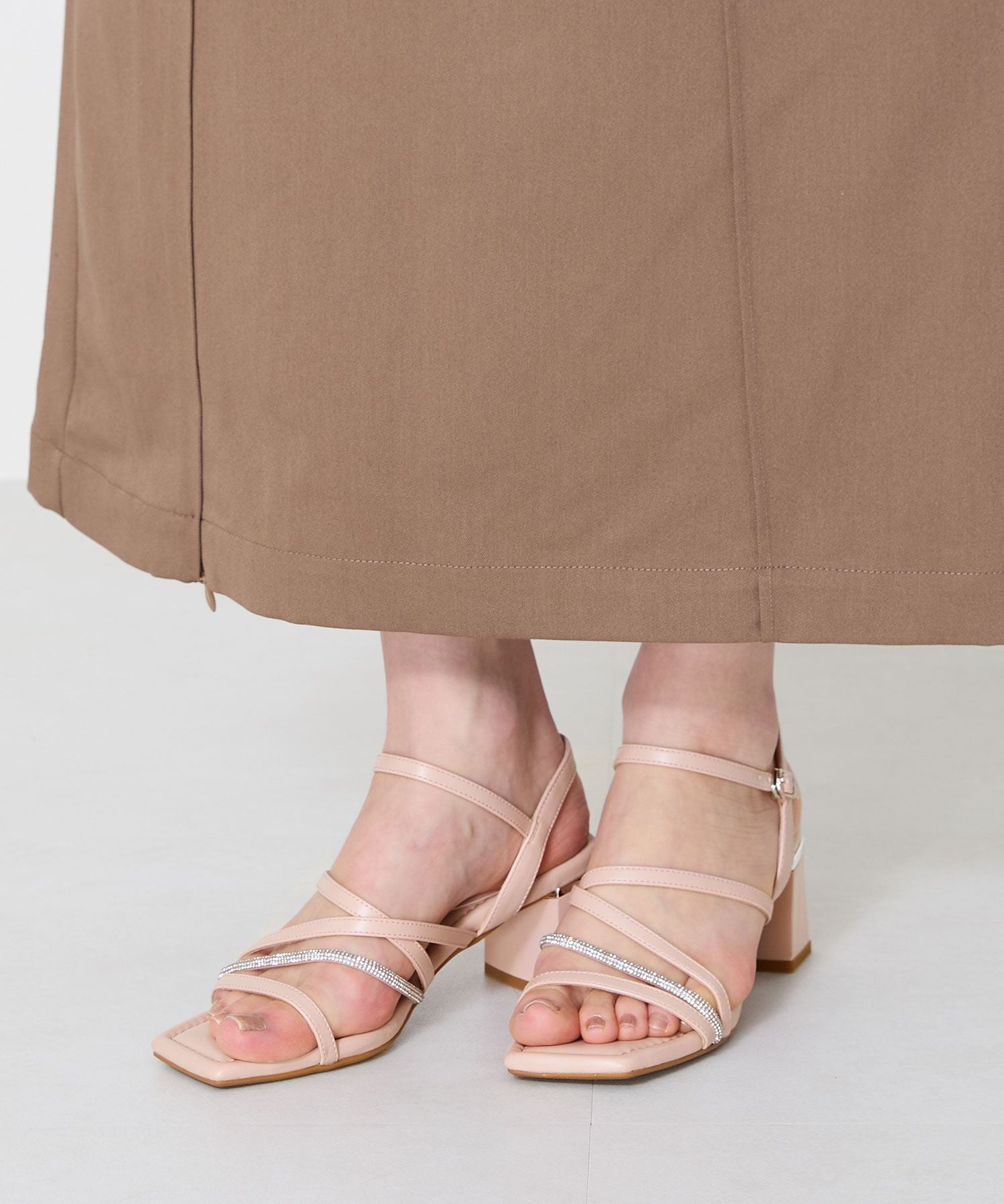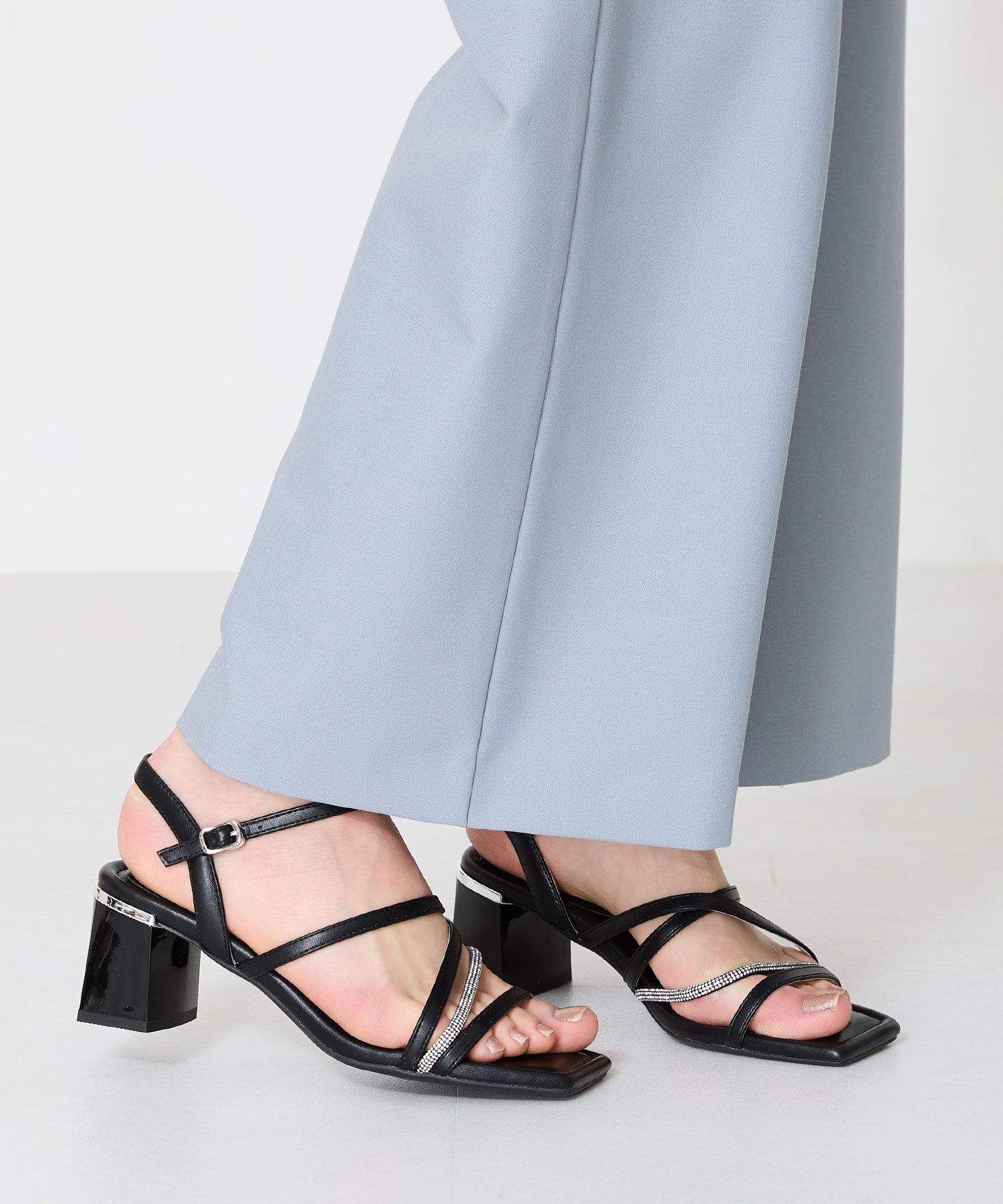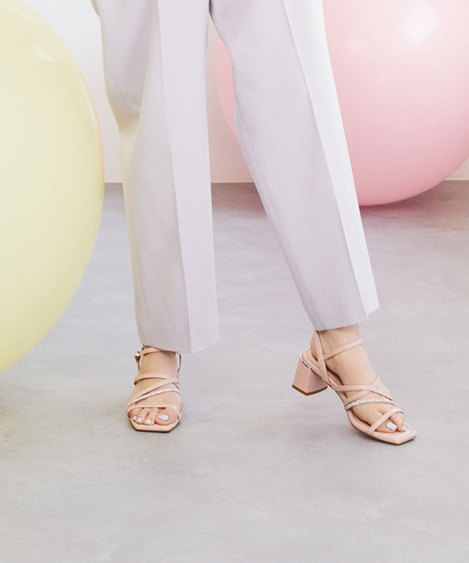 甲ストラップの1本にラインストーンを配置することで大人エレガンスな雰囲気に。