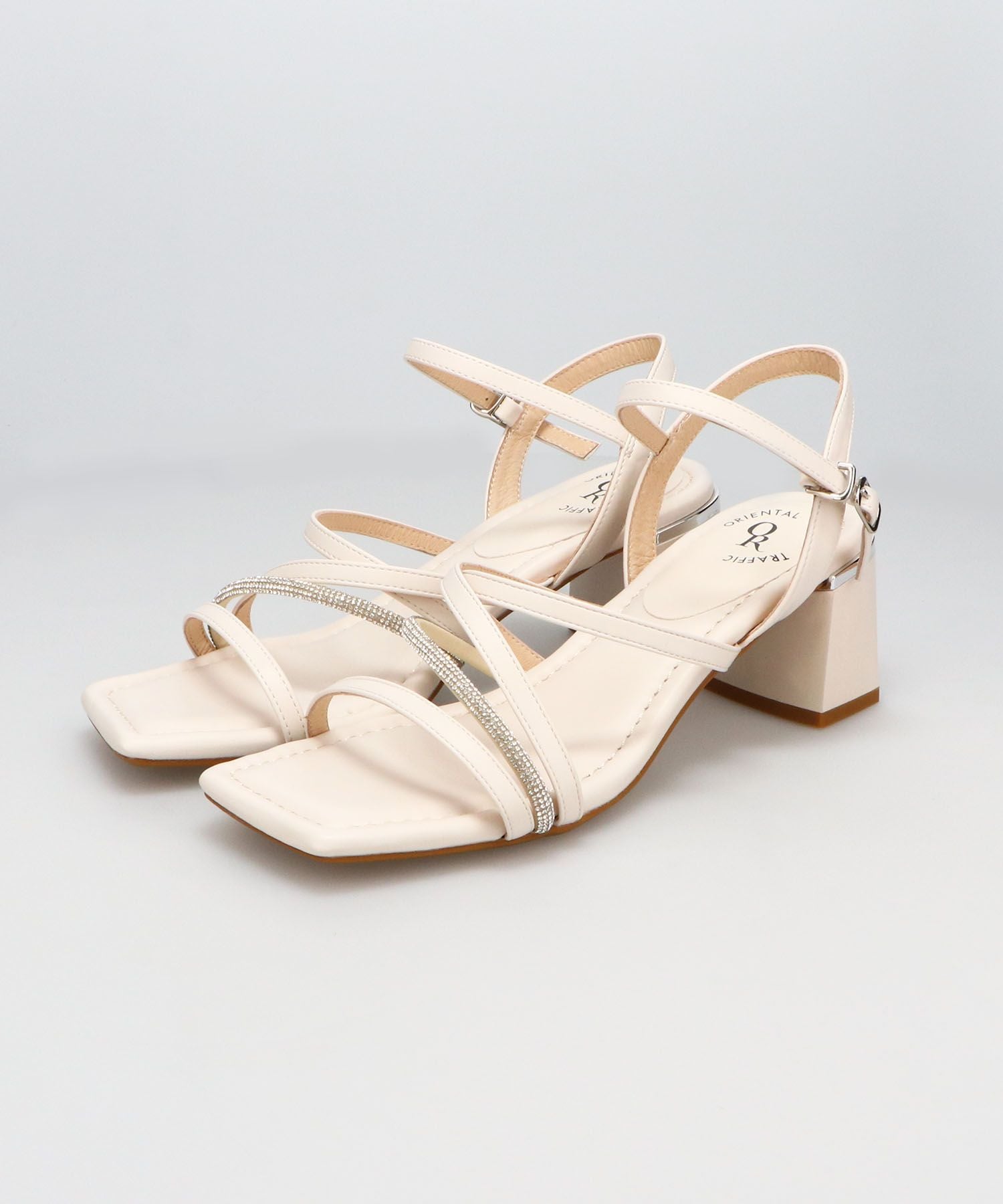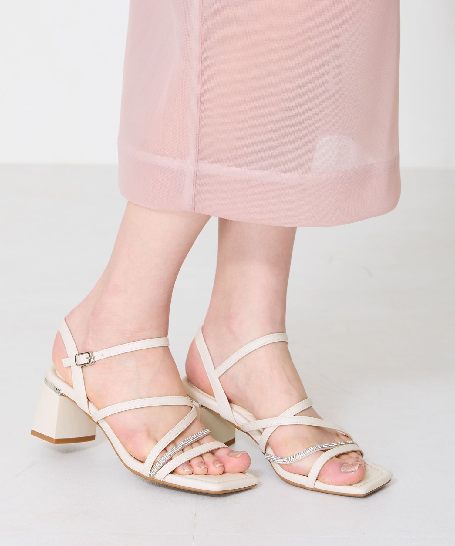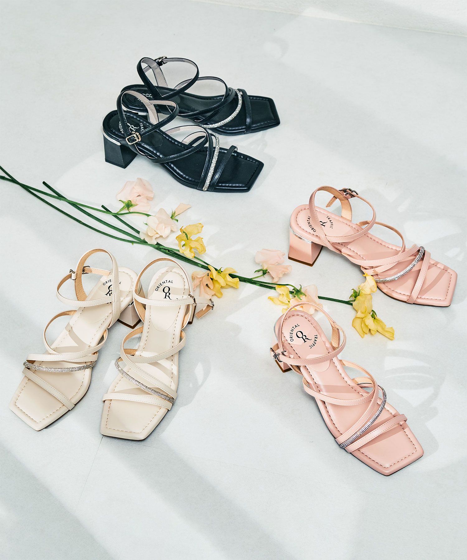 甲ストラップの1本にラインストーンを配置することで大人エレガンスな雰囲気に。