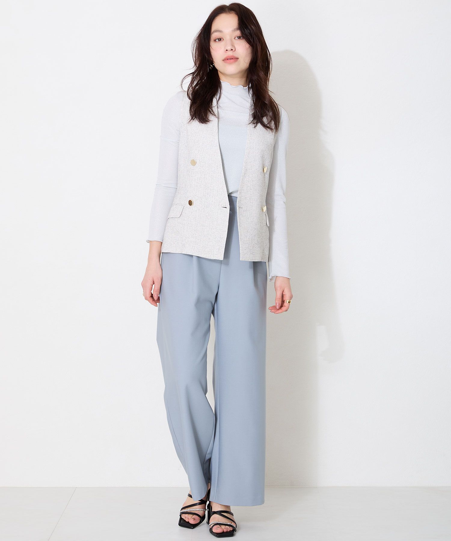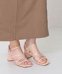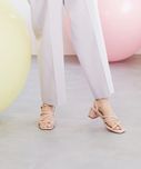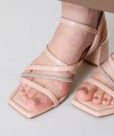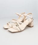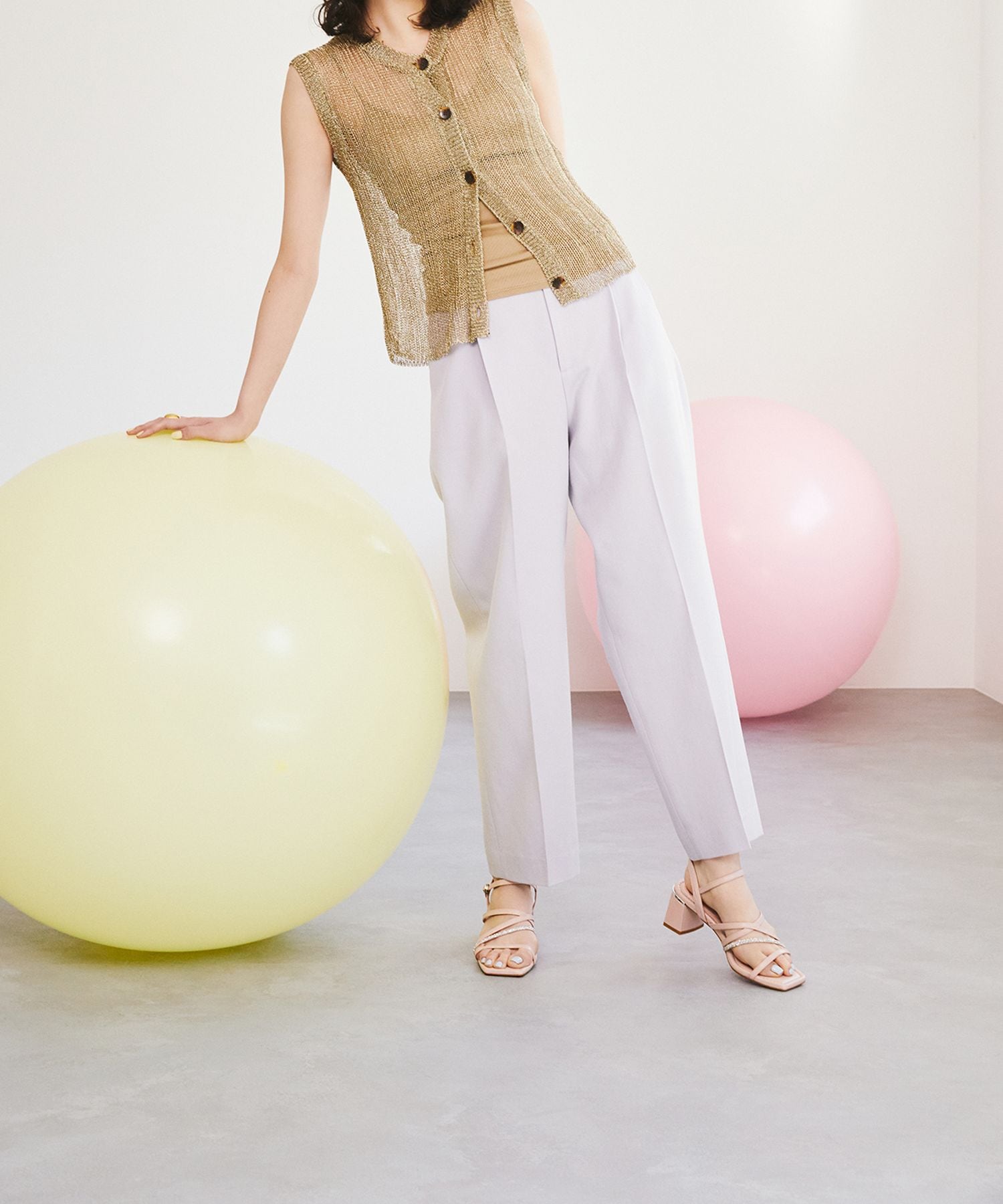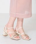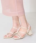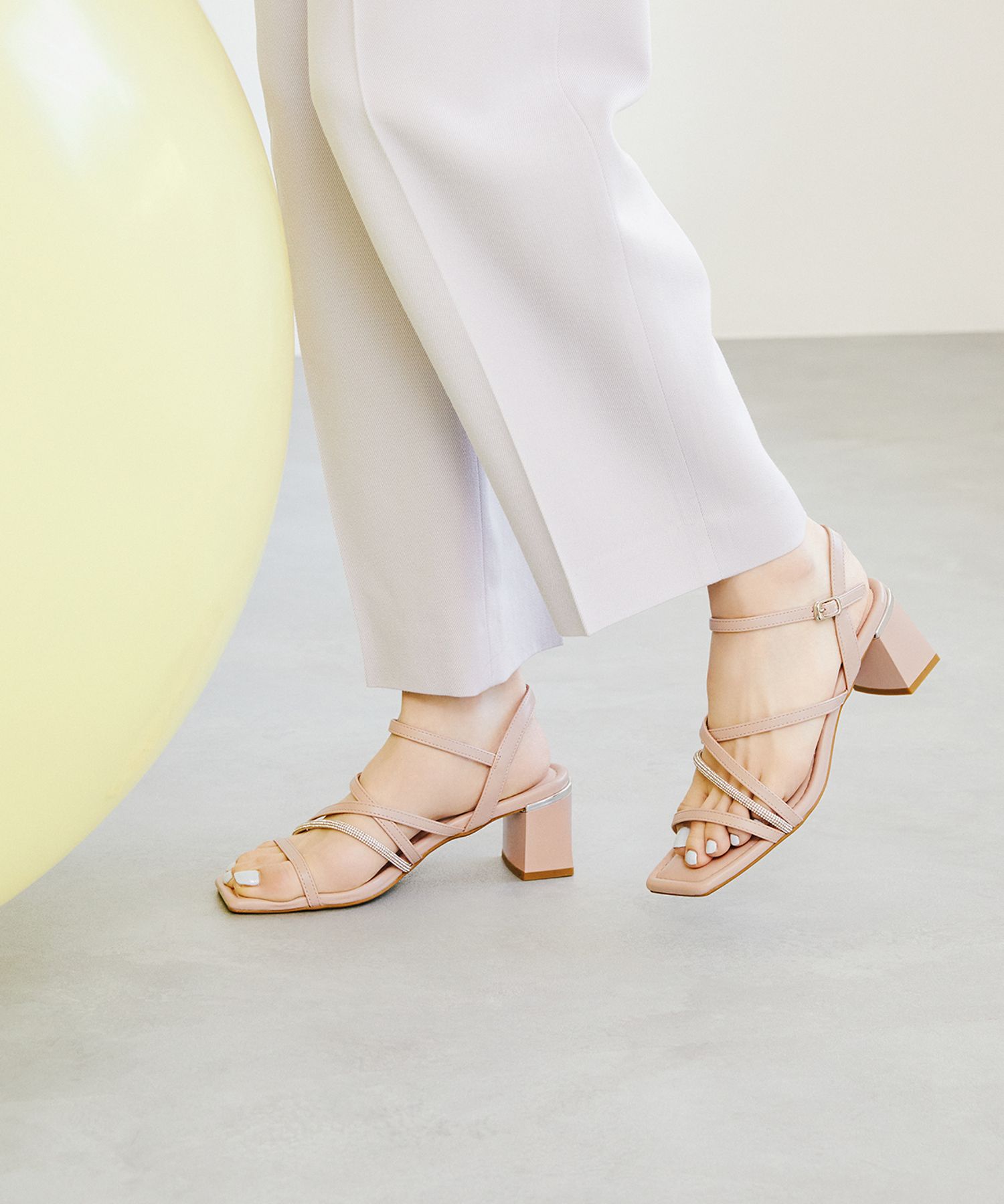 夏のコーディネートには欠かせないきれいめサンダルは、華奢なナローストラップが女性らしさを引き立ててくれる。