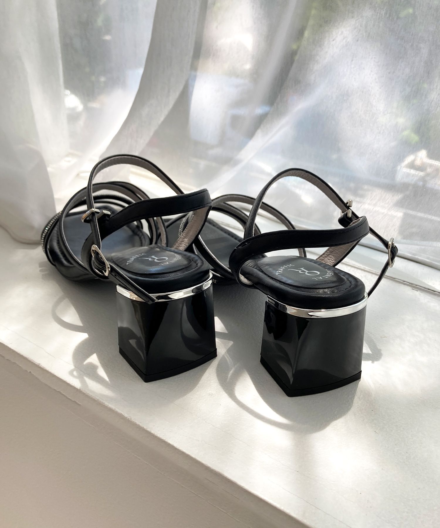 ツヤのあるヒールにはシルバーのメタリックラインを施しているので、どこから見てもおしゃれに決まる。