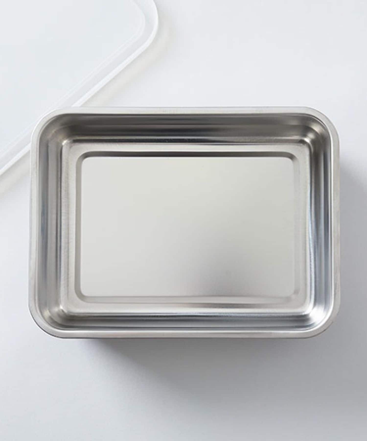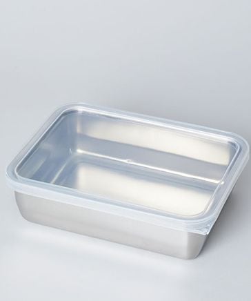 食品のストックにおすすめ。色移りや匂い移りがしにくいステンレス製の保存容器です。