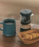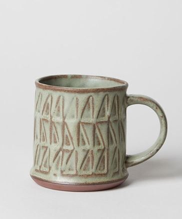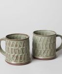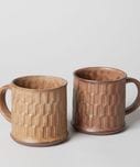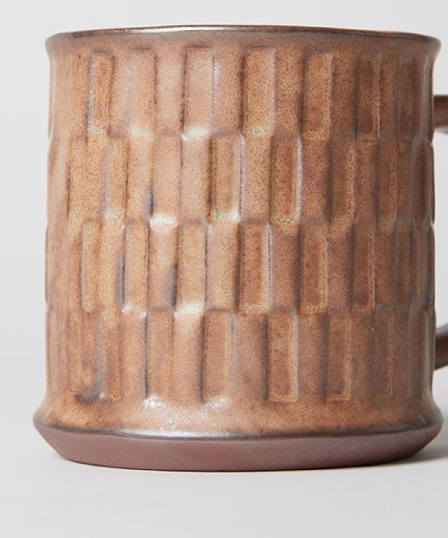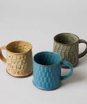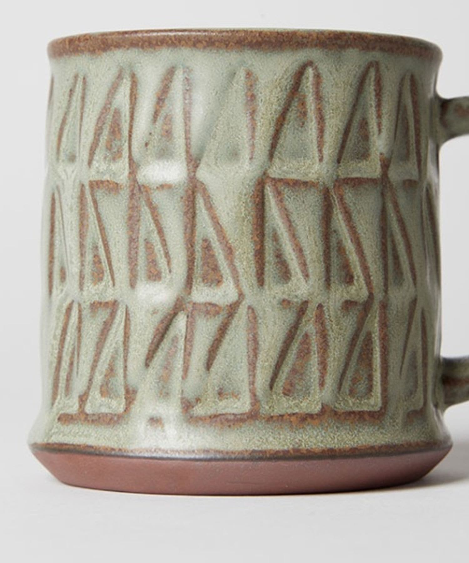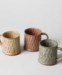 ぽってりとしたフォルムにレリーフをデザインし、表情と色合いを考え釉薬を施したオリジナルのマグ。