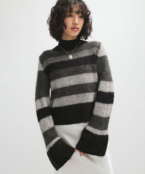 ミックスヤーンボーダーニットプルオーバー