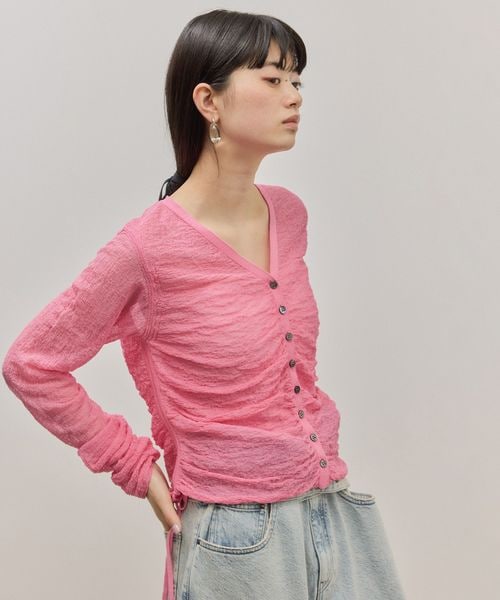 クレープリンクスギャザーシアーカーディガン