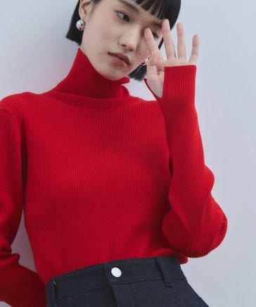 【WEB限定】・【定番人気】WOOL混リブタートルニット