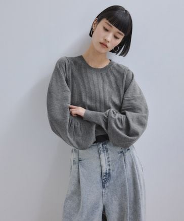【WEB限定】・【サステナブル】ニュアンススリーブニットプルオーバー