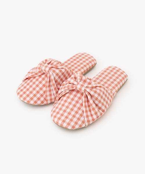 ギンガムチェックリボンルームシューズ