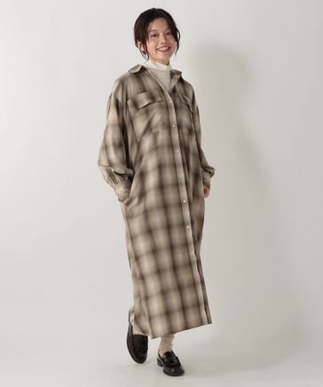 オンブレチェックシャツワンピース
