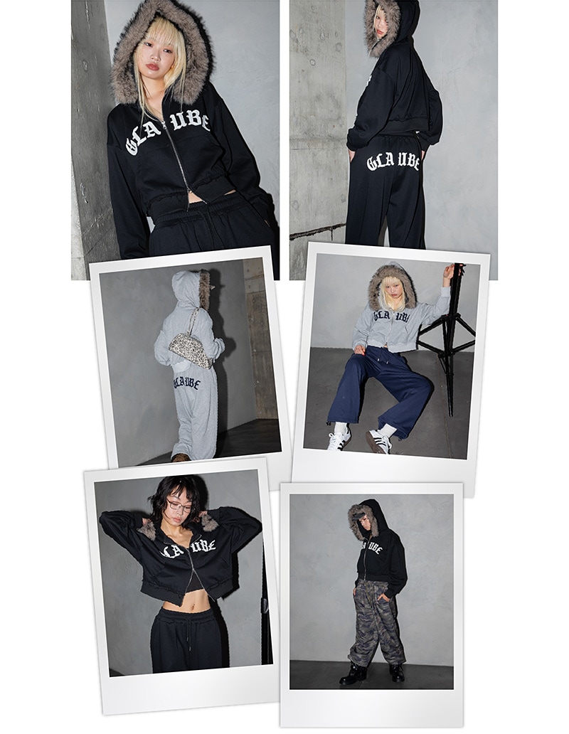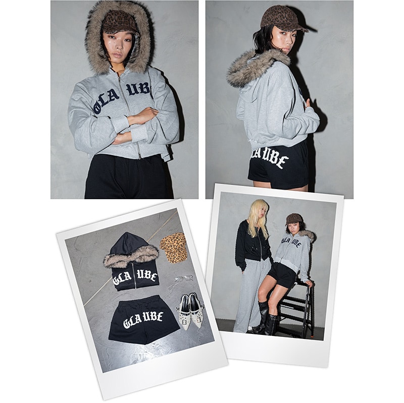 フードファージップ、ワッペンスウェットショートパンツ、