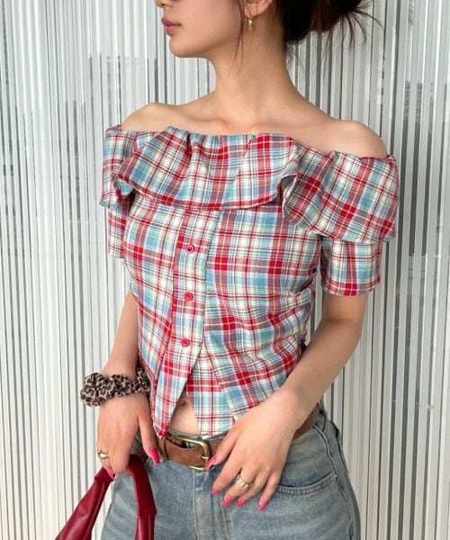 【新色追加】3.3 Field Trip/チェックオフショルブラウス