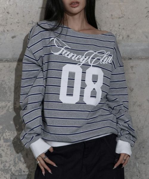 FANCY CLUB/ボーダーオフショルダープルオーバー