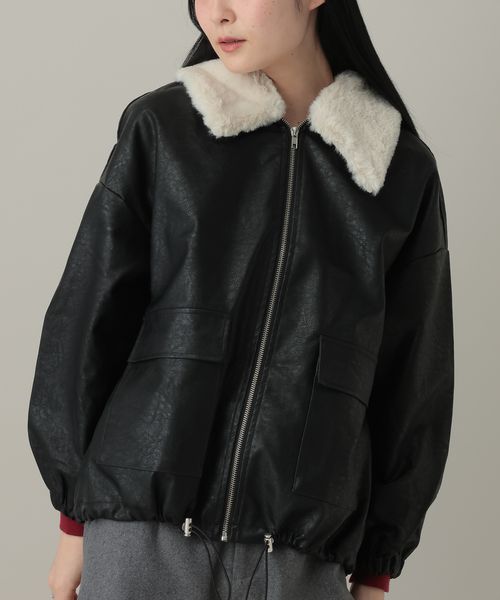 3.3 Field Trip/ファー襟フェイクレザージャケット