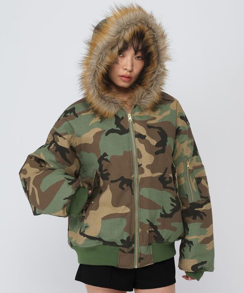LAND MUSEUM/カモフラフードファーブルゾン