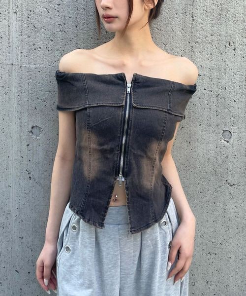 3.3 Field Trip/デニムオフショル半袖ブラウス