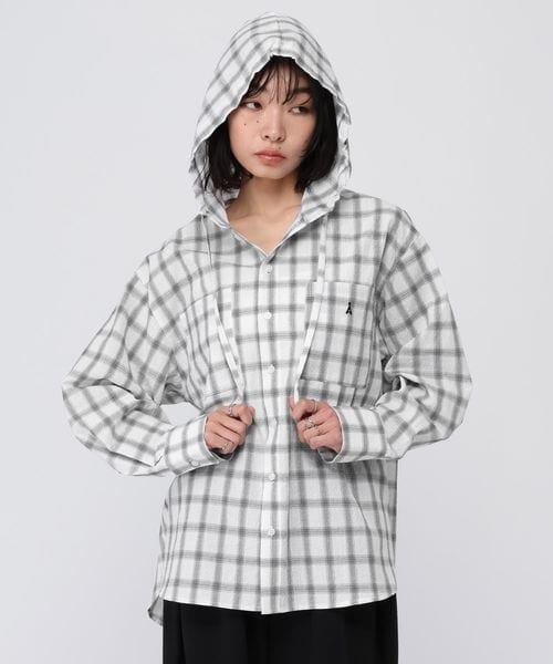 予約【UNISEX】ALAND/チェックフードシャツロングスリーブ