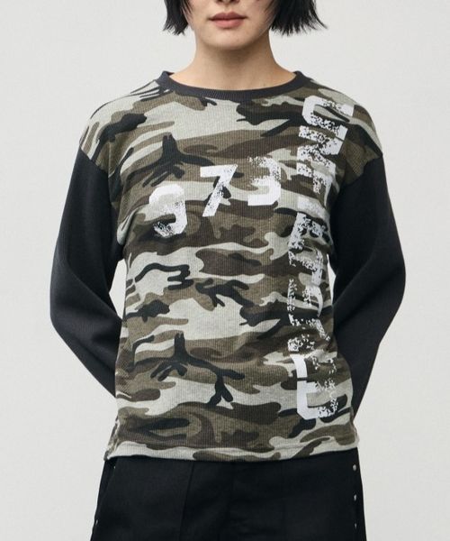 【UNISEX】KAIFAI/Camo Waffle ロングスリーブ