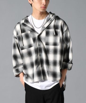 【新色追加・一部カラー再入荷】LAND MUSEUM/オンブレフード長袖シャツ