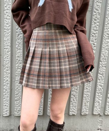 3.3 Field Trip/チェック微起毛プリーツミニスカート