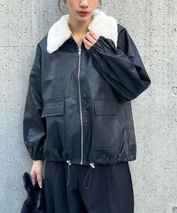 3.3 Field Trip/ファー襟フェイクレザージャケット