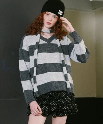 3.3 Field Trip/リボン付きオーバーシルエットニット