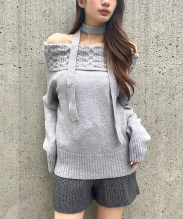 3.3 Field Trip/ストール付きオフショルプルオーバー