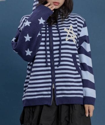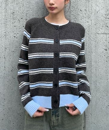 ★K-POPアイドル着用【UNISEX】WaiKei/ボーダーニットZIP