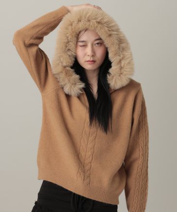 3.3 Field Trip/ファー付きフーディ―ニット