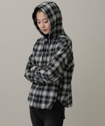 【UNISEX】ALAND/チェックフード長袖シャツ