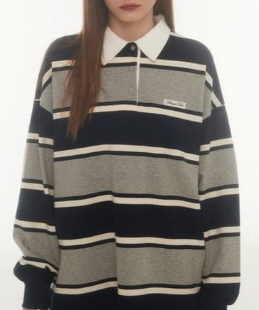 【UNISEX】ASCLO/ストライプコットンカラーT