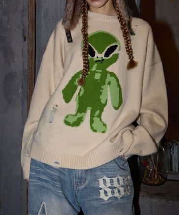 予約【UNISEX】HOODHOOD/エイリアンダメージニット