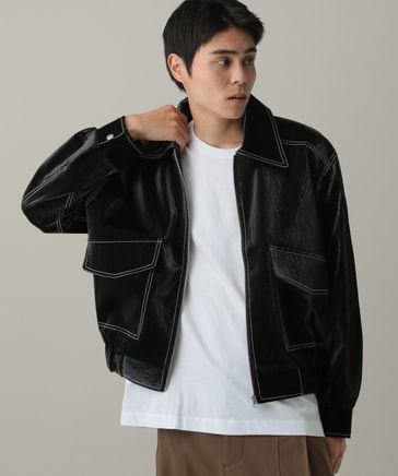LAND MUSEUM/ステッチレザーブルゾン