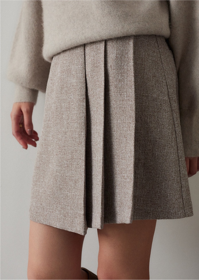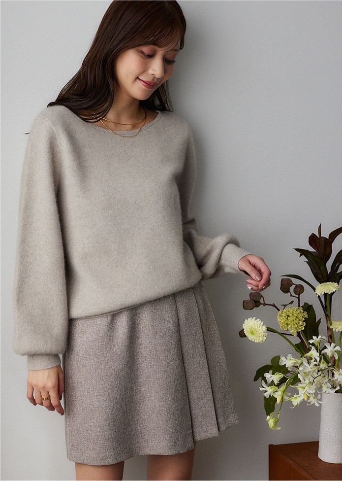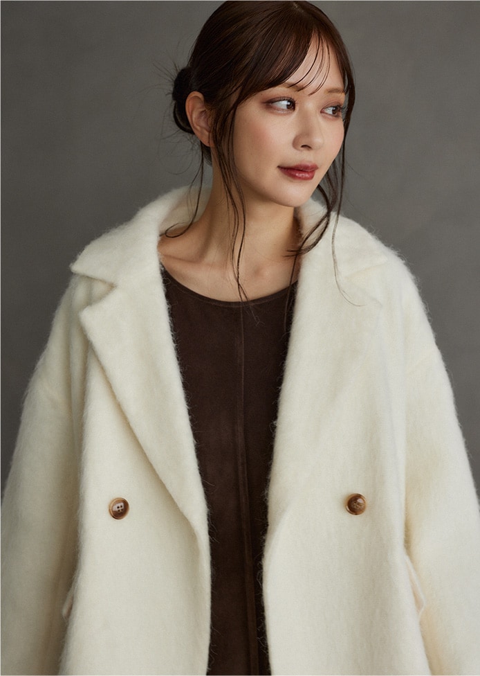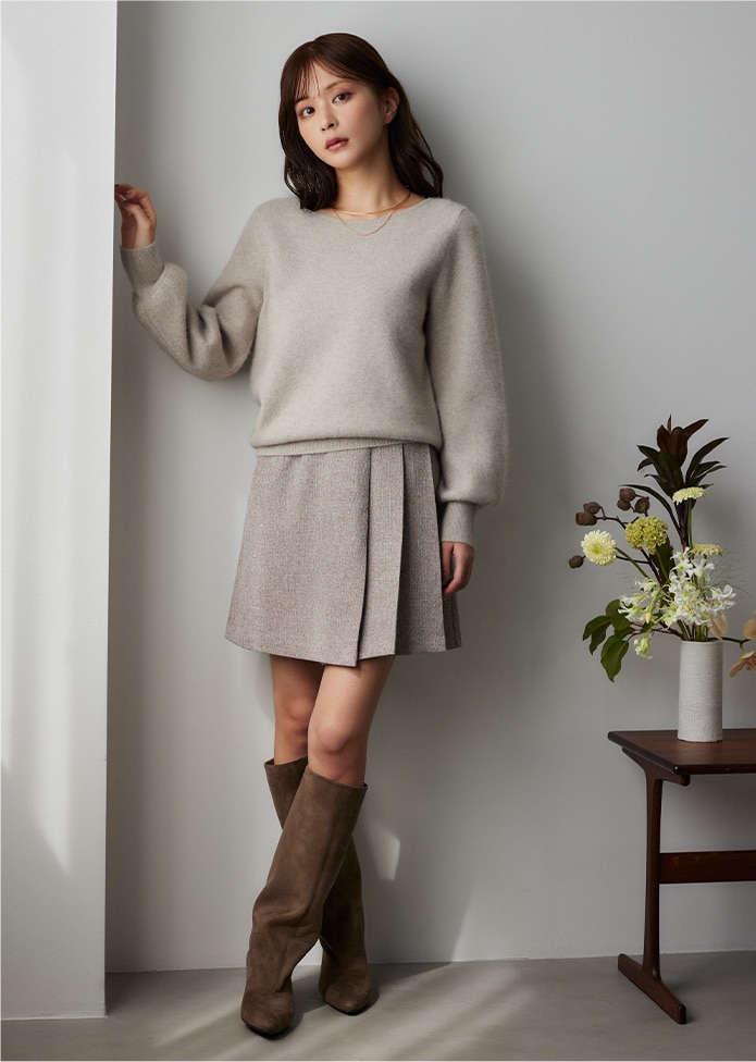 「冬だけでなく、3シーズン着こなせるように万能なグレーをセレクト。クラシックなシルエットに、ハーフプリーツでほんの少し遊びをプラスしました。フェミニンとモードのバランスを意識してデザインしています」
