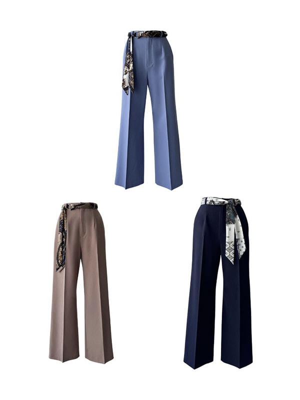 寒色のパンツで