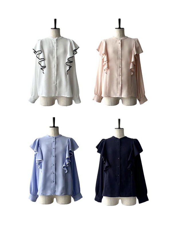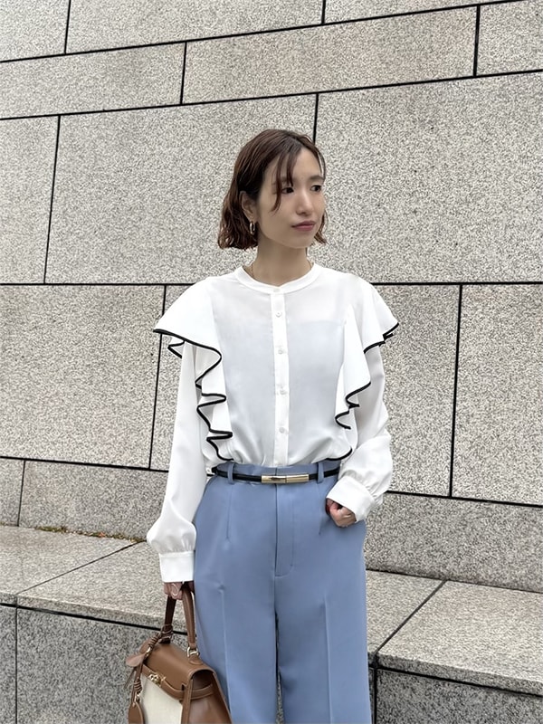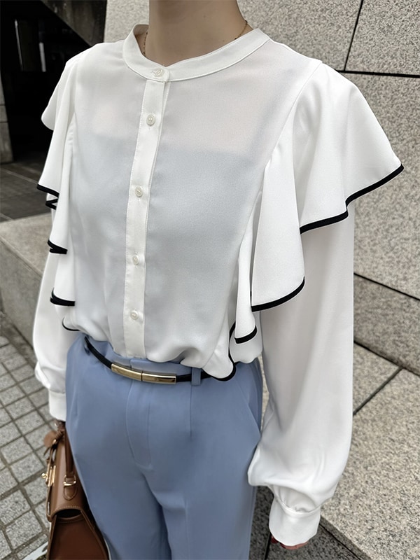 見せてくれるフリルブラウス。