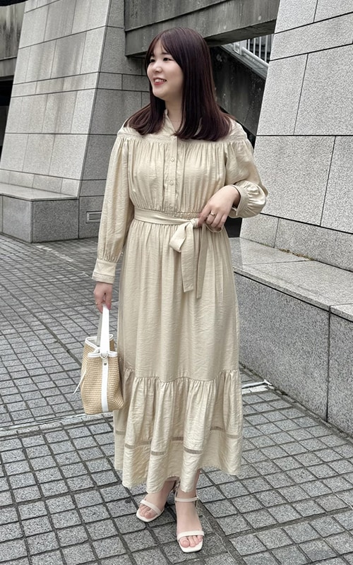 柔らかな印象のワントーンコーデ
