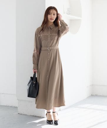 【選べる着丈】サイドレースキリカエシャツワンピース